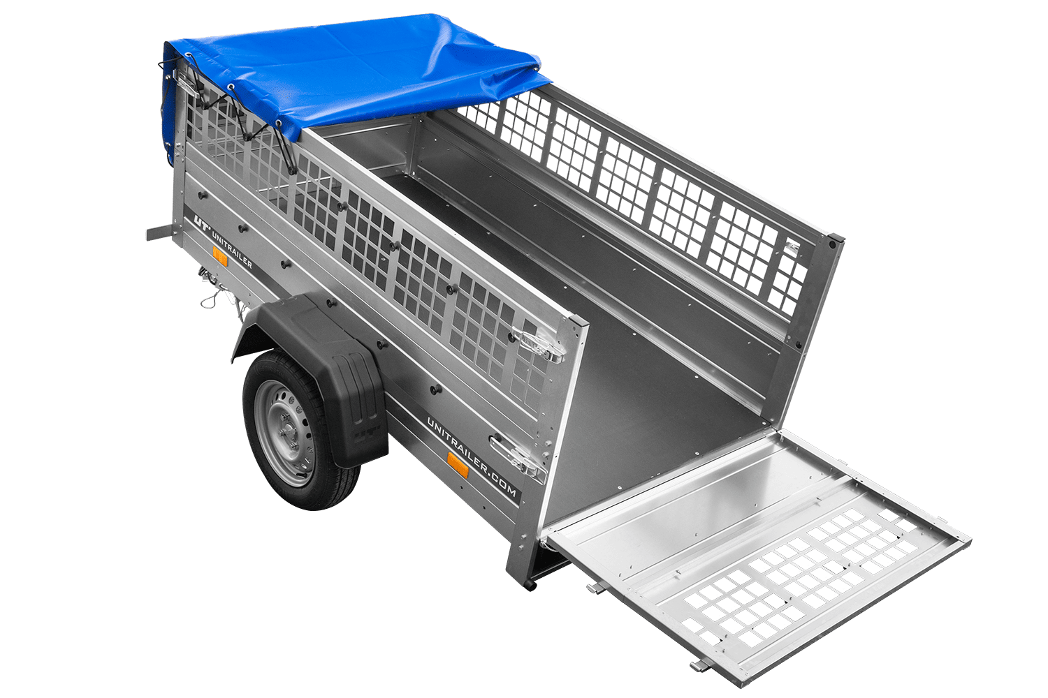 - Der Pkw-Anhänger Garden Trailer 200 KIPP von UNITRAILER mit einem zGG bis 750 kg verfügt über eine aufklappbare hintere Bordwand