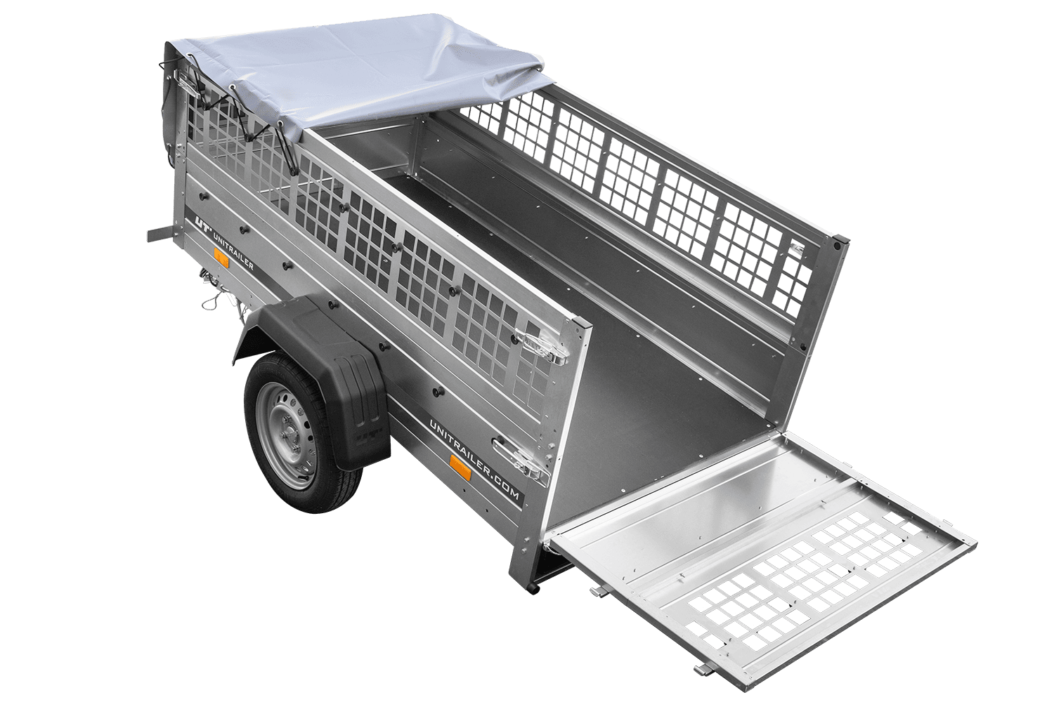 • Der Pkw-Anhänger Garden Trailer 200 KIPP von UNITRAILER mit einem zGG bis 750 kg verfügt über eine aufklappbare hintere Bordwand