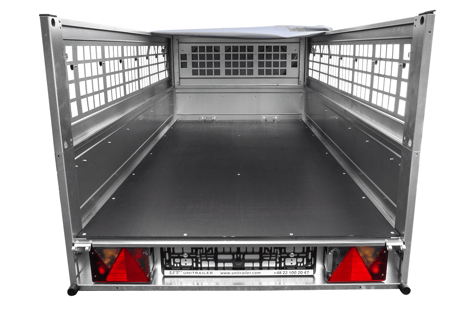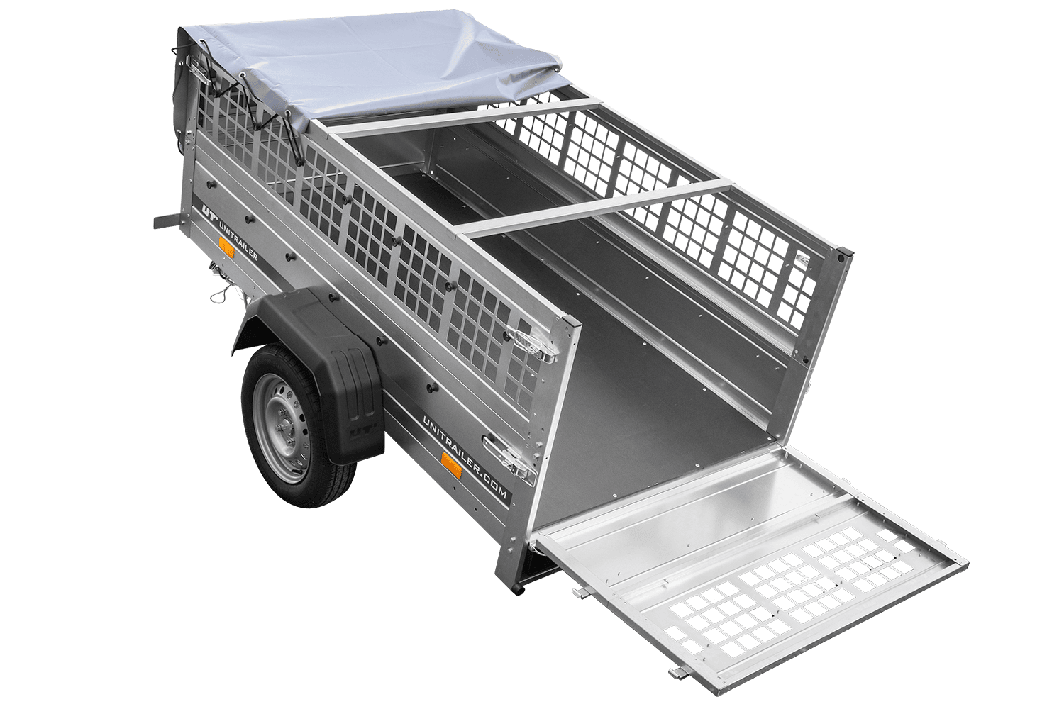 - Der Pkw-Anhänger Garden Trailer 200 KIPP von UNITRAILER mit einem zGG bis 750 kg verfügt über eine aufklappbare hintere Bordwand