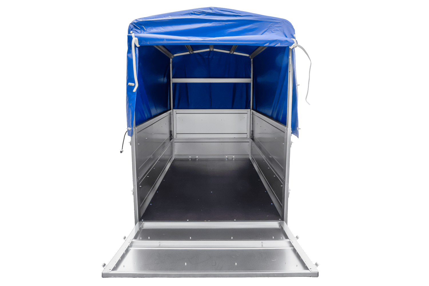 Mehr Platz für den Materialtransport – zwei Seiten und ein Rahmen mit blauer Plane
