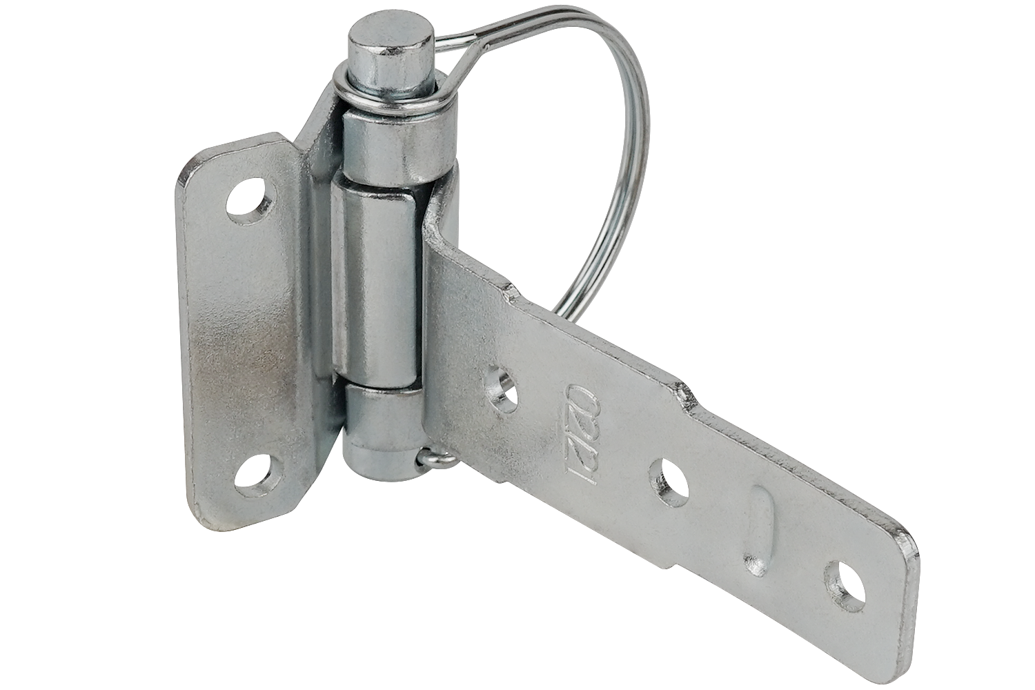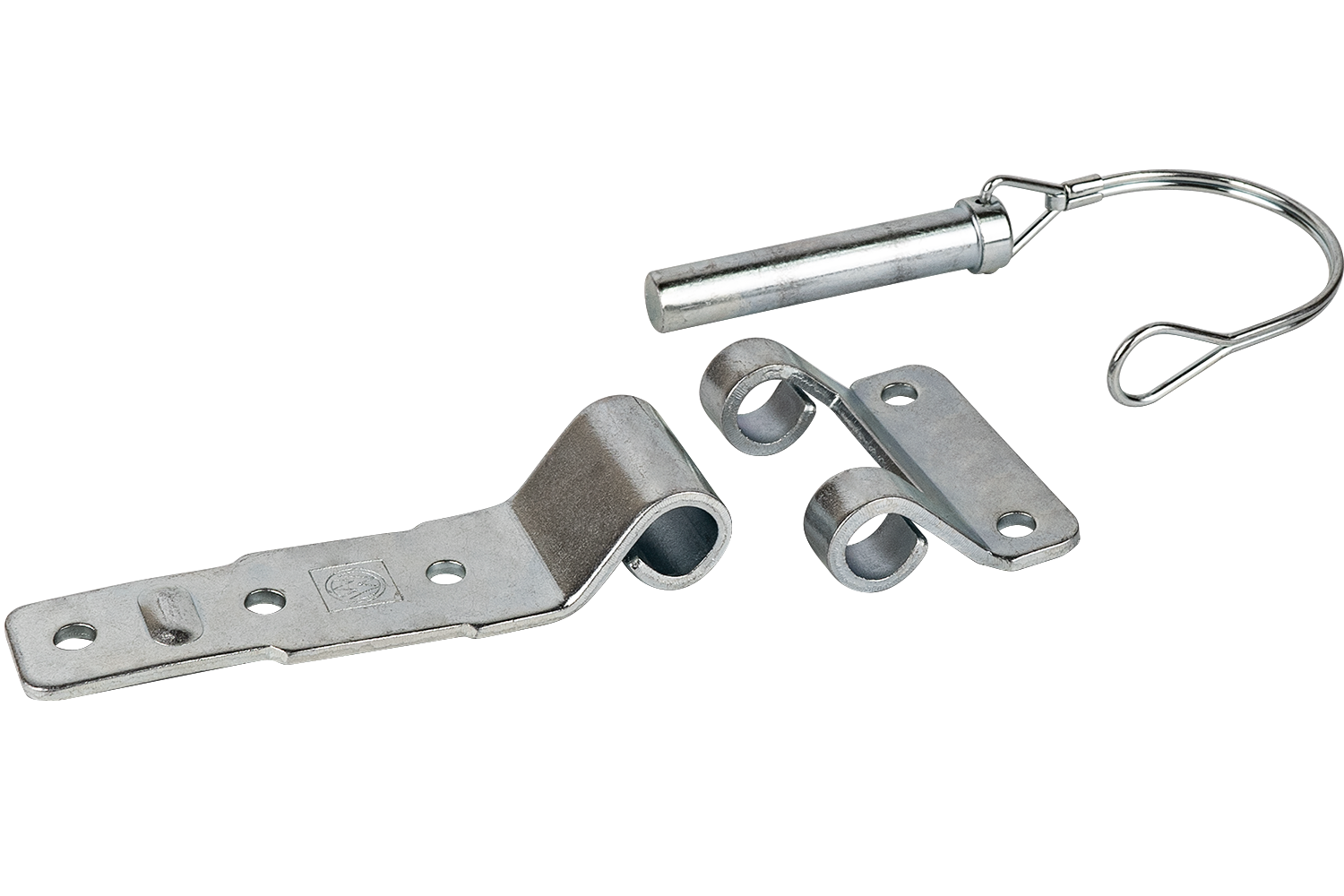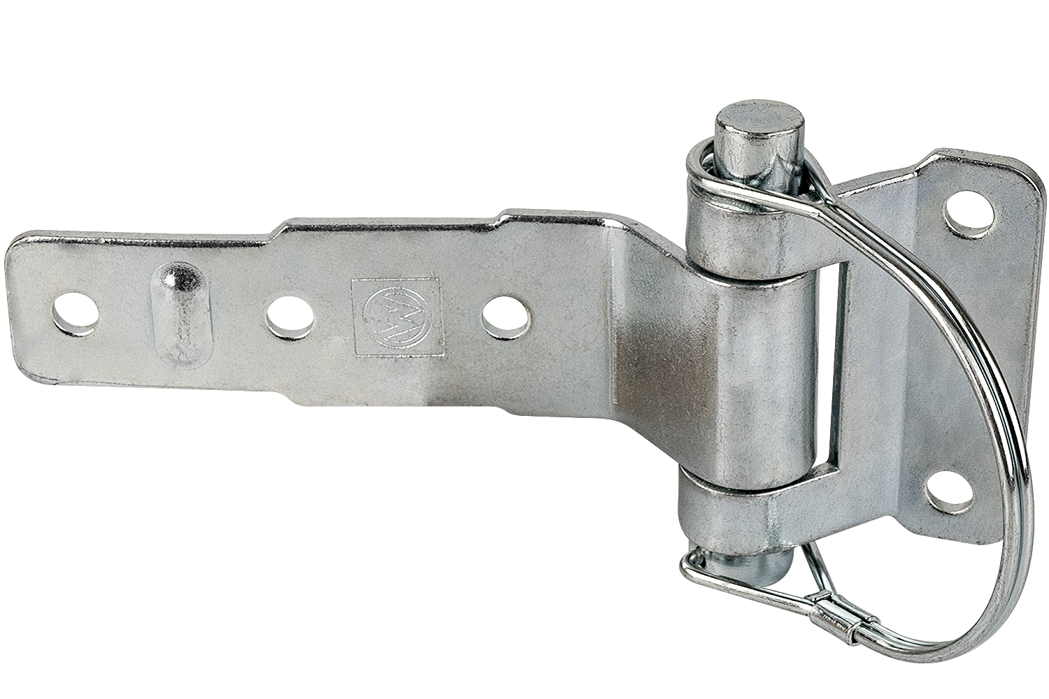 Dieses abnehmbare Anhänger-Seitenscharnier ermöglicht das schnelle und einfache Abnehmen von Anhänger-Seitenwänden . Es besteht aus einem Griff und einem Stift, der im ausgefahrenen Zustand ein werkzeugloses Abnehmen ermöglicht. Dies ermöglicht ein effizientes Abnehmen der Seitenwand und vereinfacht das Be- und Entladen erheblich – insbesondere, wenn ein einfacher Zugang zum Laderaum erforderlich ist. Das Scharnier sorgt dafür, dass die Seitenwand während der Fahrt sicher befestigt ist und bei Bedarf schnell gelöst werden kann .