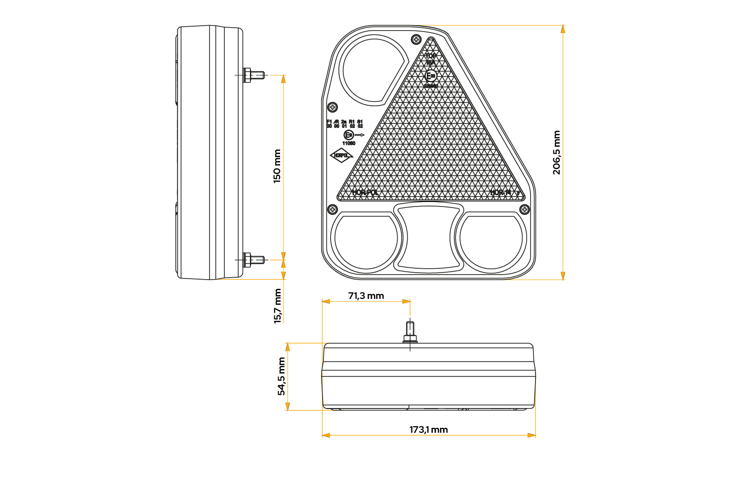 Die LZD 774 LED-Heckleuchte von HORPOL ist für die Montage auf der rechten Fahrzeugseite vorgesehen und hat folgende Abmessungen: Breite 206,5 mm, Höhe 174 mm, Tiefe 54,5 mm . Ausgelegt für einen Betrieb in einem Spannungsbereich von 12-24 V kann es in Anhängern, Lastwagen und Trailern eingesetzt werden, was seine Universalität unterstreicht. Die Lampe verfügt über eine Kabeltülle , im Set sind eine Buchse, ein Schrumpfschlauch und ein Kabelbinder für den schnellen und bequemen Kabelanschluss enthalten. Dank der eingesetzten LED-Technologie bietet die Lampe hohe Leistung, Haltbarkeit und Energieeffizienz und gewährleistet so Sicherheit bei unterschiedlichen Straßenbedingungen.