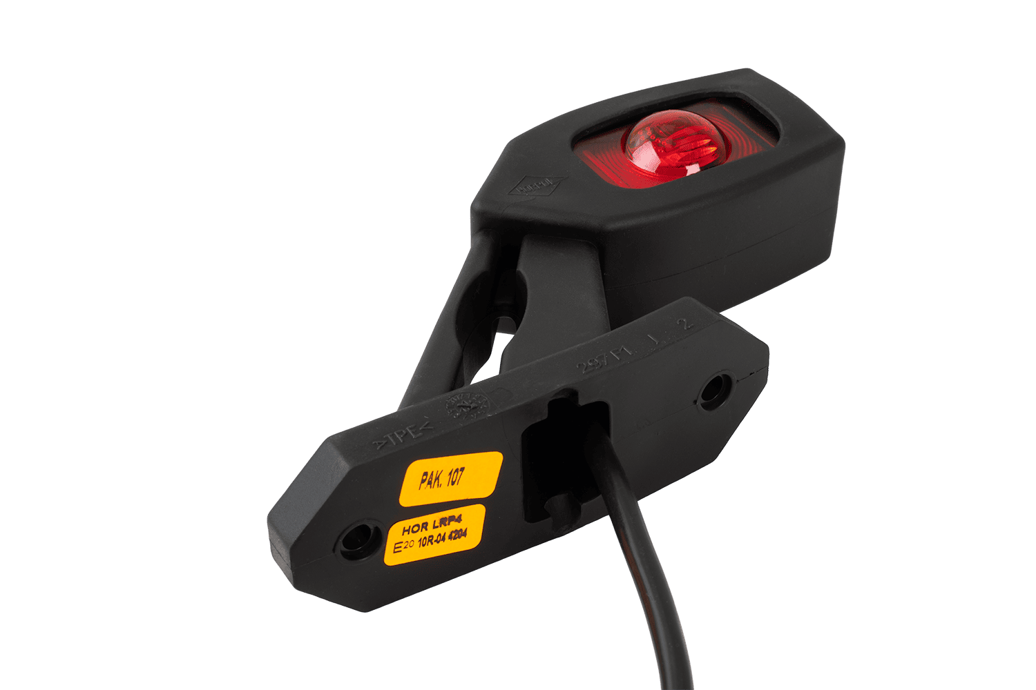 - LD 2109/P LED HORPOL Umrissleuchte für den Anbau auf der rechten Seite. Bietet: vorderes Positionslicht, hinteres Positionslicht und Seitenmarkierungslicht. Es verfügt über einen Gummiarm zur Befestigung. Perfekt für Anhänger, LKW und Landmaschinen.