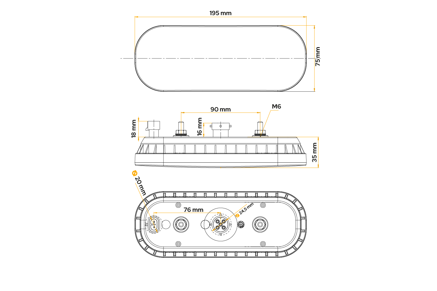 Die LED-Rückleuchte FT-320 von FRISTOM ist für den Einbau auf der linken und rechten Seite vorgesehen und hat folgende Abmessungen: Breite 195 mm, Höhe 75 mm, Tiefe 35 mm . Es ist für den Betrieb im Spannungsbereich von 12–24 V geeignet und wird in Anhängern, Lastkraftwagen und Abschleppwagen eingesetzt, was seine Universalität unterstreicht . Ausgestattet mit einem 5-poligen Bajonettanschluss ermöglicht es eine einfache und schnelle Installation. Dank der Verwendung von LED-Technologie gewährleistet die Lampe eine hohe Effizienz, Langlebigkeit und Energieeffizienz und garantiert so Sicherheit bei verschiedenen Straßenbedingungen. Die Struktur der Lampe ist hermetisch, resistent gegen Stöße und mechanische Beschädigungen und verfügt außerdem über einen elektrischen Schutz gegen Verpolung, was ihre Zuverlässigkeit unter schwierigen Betriebsbedingungen weiter erhöht .