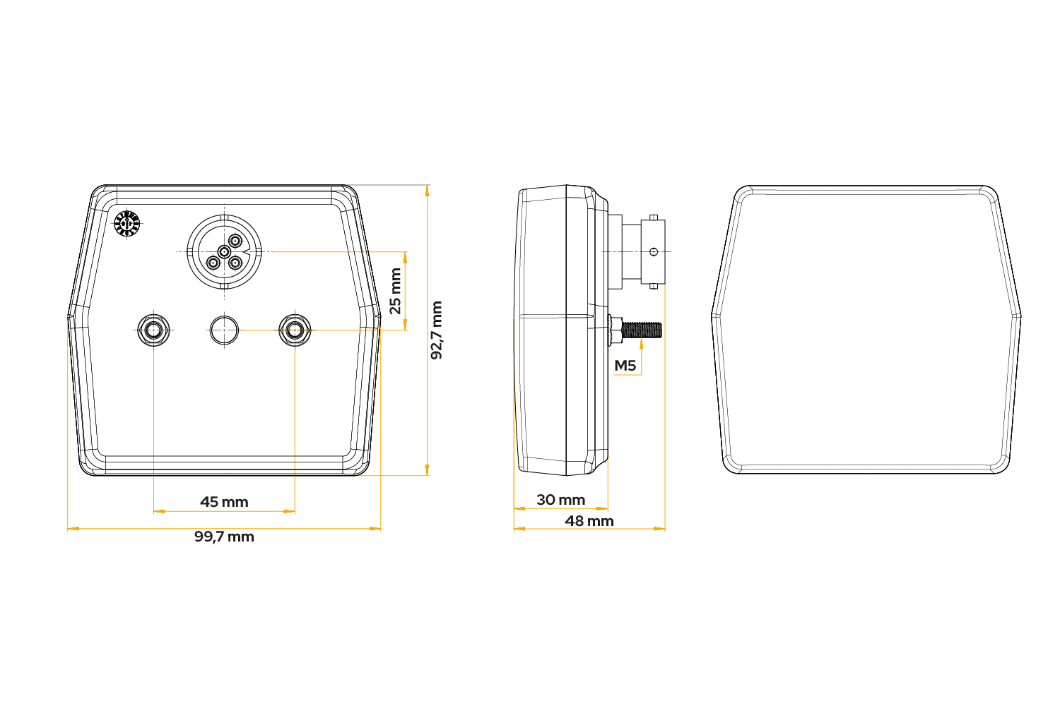 Die LED-Rückleuchte FT-222 von FRISTOM ist für den Einbau auf der linken und rechten Seite vorgesehen und hat folgende Abmessungen: Breite 99,7 mm, Höhe 92,7 mm, Tiefe 30 mm . Ausgelegt für einen Betrieb in einem Spannungsbereich von 12 V kann es in leichten Anhängern, Bussen und Anhängern eingesetzt werden, was seine Universalität unterstreicht. Ausgestattet mit einem 5-poligen Bajonettstecker ermöglicht es eine einfache und schnelle Installation. Dank der eingesetzten LED-Technologie bietet die Lampe hohe Leistung, Haltbarkeit und Energieeffizienz und gewährleistet so Sicherheit bei unterschiedlichen Straßenbedingungen. Es verfügt über einen elektrischen Verpolungsschutz, was die Zuverlässigkeit unter schwierigen Betriebsbedingungen zusätzlich erhöht.