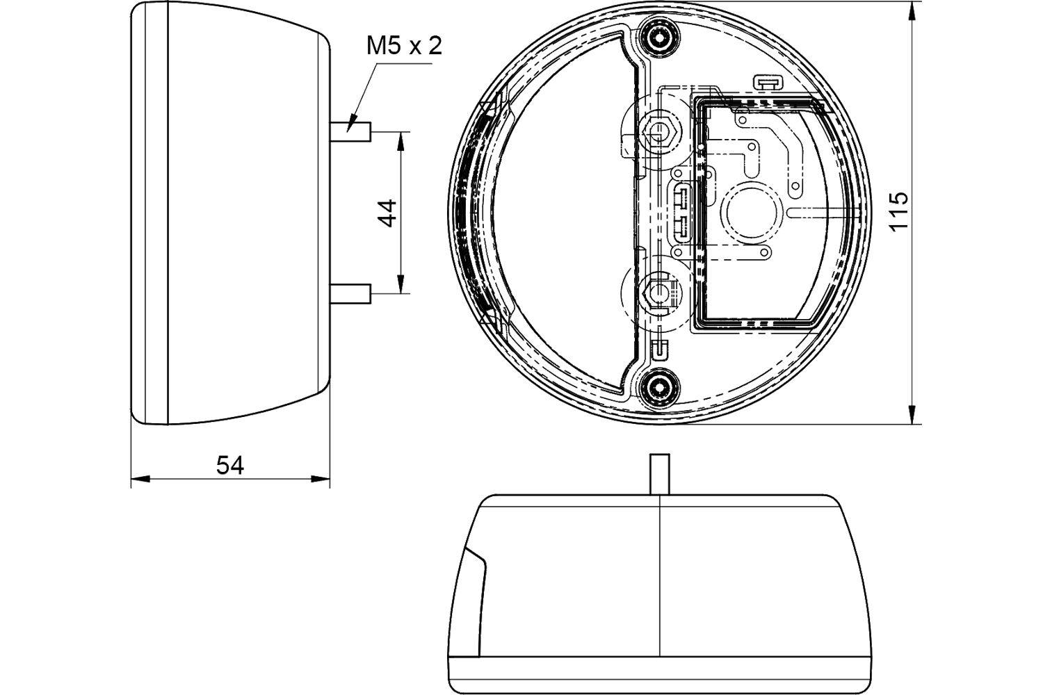 Die DPT10-Rückleuchte von DOBPLAST, zur Montage auf der linken oder rechten Seite,hat folgende Abmessungen: Durchmesser 115 mm, Tiefe 54 mm . Auf der Rückseite der Lampe befindet sich eine Gummitülle , die den Anschluss des Kabels erleichtert und sie somit zu einer idealen Lösung für den Einsatz in Anhängern und Fahrradträgern macht .
