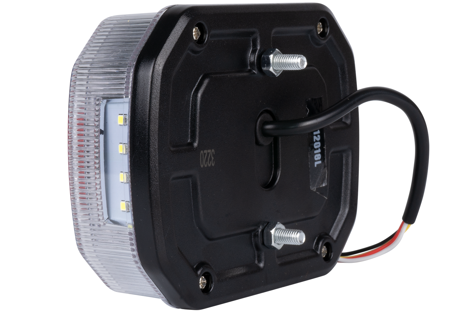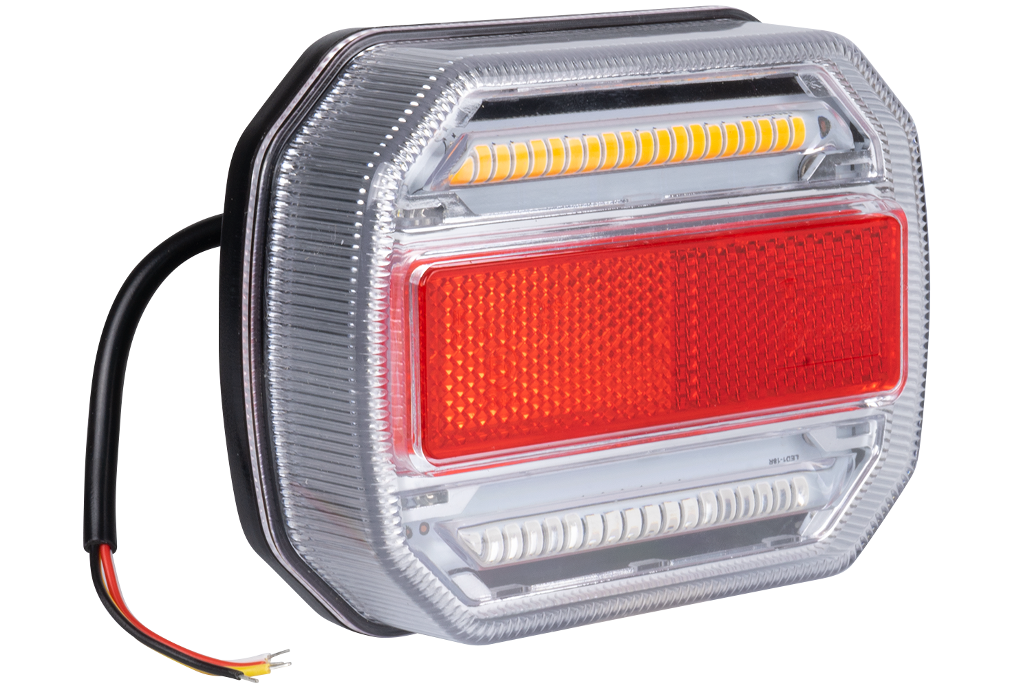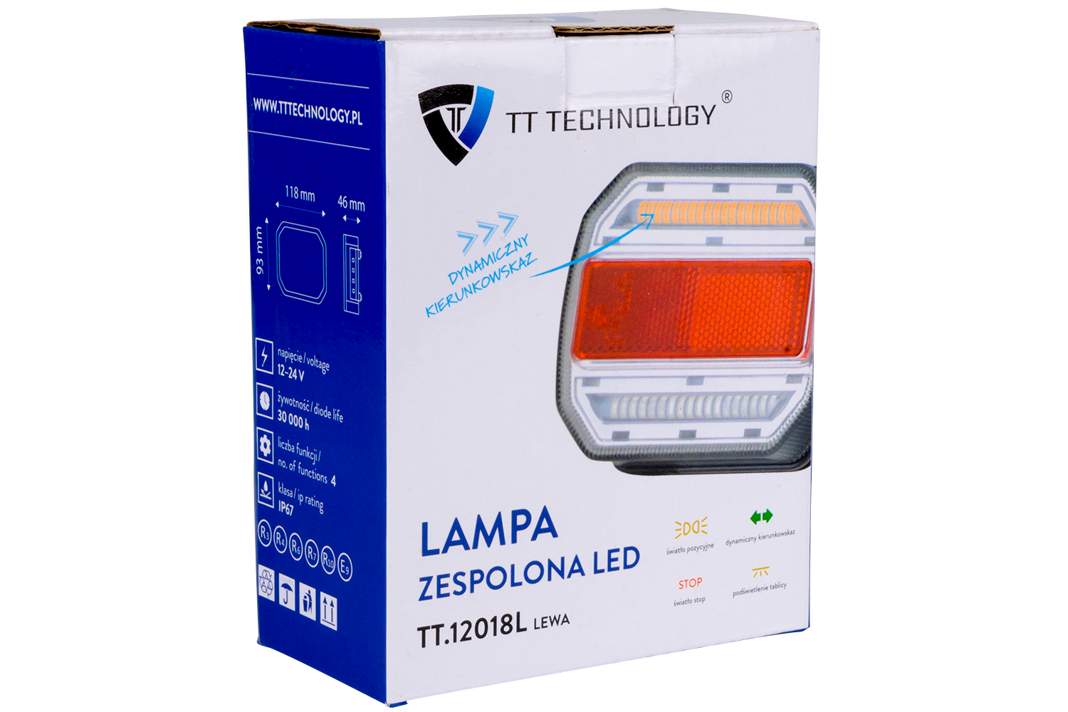 - TT.12018L LED-Rückleuchte zur Montage auf der linken Seite. Bietet 4 Funktionen: Positionslicht, Bremslicht, Blinklicht und Kennzeichenlicht. Perfekt für Anhänger, LKWs, Landmaschinen.
