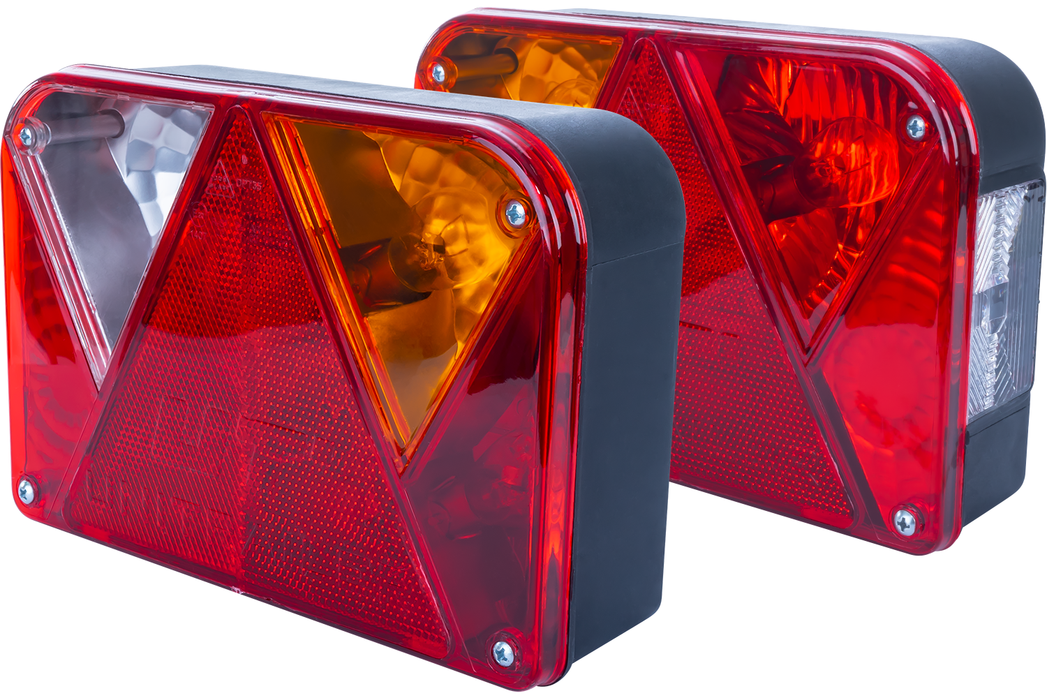 Ein Set aus zwei DPT35- Rückleuchten von DOBPLAST , vorgesehen für die Montage auf der linken und rechten Fahrzeugseite , zeichnen sich durch folgende Abmessungen aus: Breite 200 mm, Höhe 135 mm, Tiefe 54 mm . Beide Lampen sind mit einem 5-poligen Bajonettanschluss ausgestattet, der eine einfache und schnelle Montage in Anhängern, Bussen oder Anhängern ermöglicht. Die Rückleuchten verfügen über eine E20-Zulassung , die den Anforderungen europäischer Sicherheits- und Qualitätsstandards entspricht .