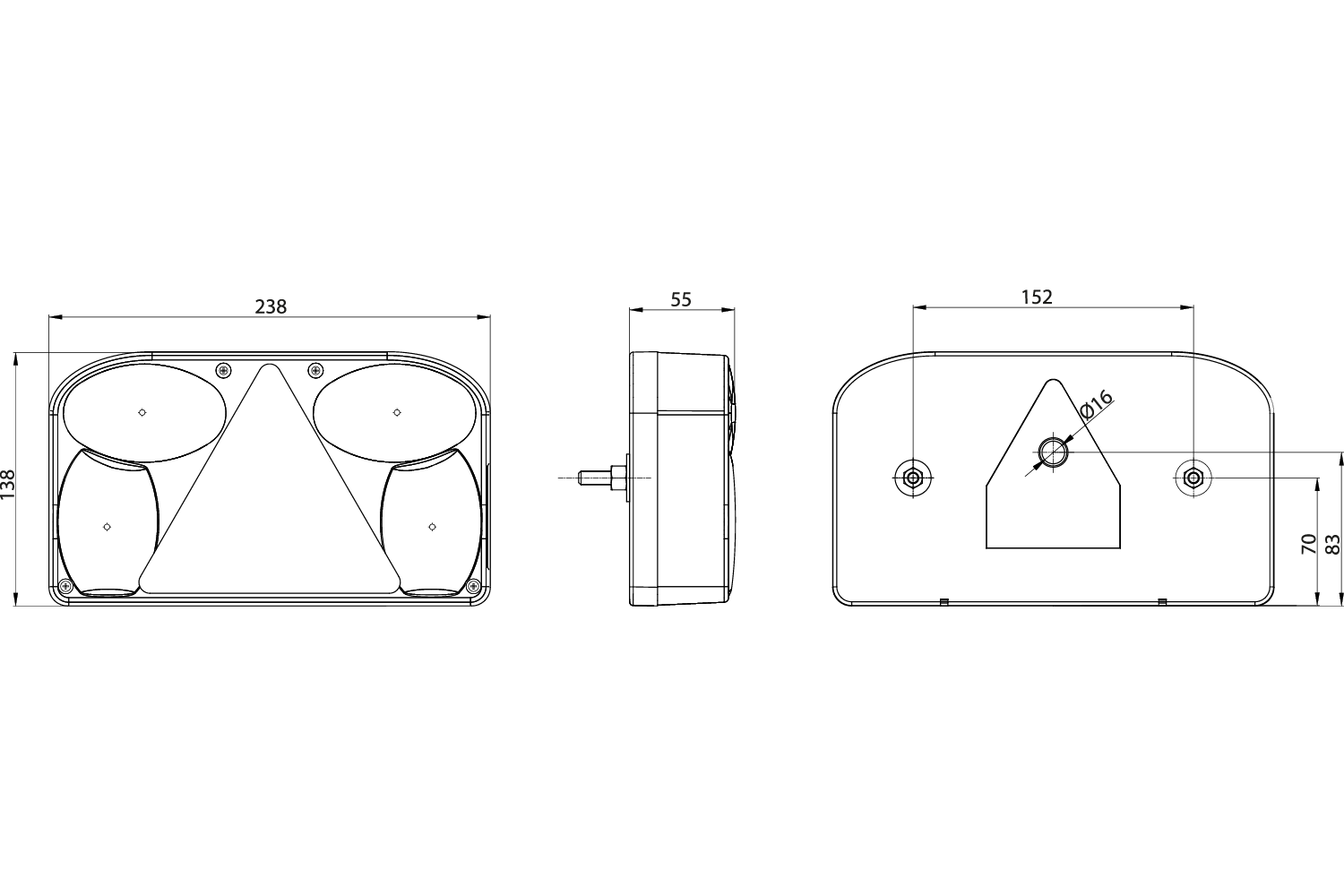 Die Rücklicht FT-088 von FRISTOM ist für die Montage auf der rechten Fahrzeugseite vorgesehen und hat folgende Maße: Breite 238 mm, Höhe 138 mm, Tiefe 55 mm . Auf der Rückseite der Lampe befindet sich eine Gummitülle , die den Anschluss des Kabels erleichtert und sie somit zu einer idealen Lösung für den Einsatz in Anhängern, Bussen und Abschleppwagen macht.
