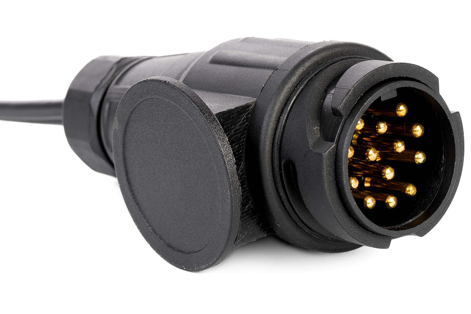 Das MANTES-Elektrosystem ist eine praktische und zuverlässige Lösung für PKW-Anhänger. Das 4 Meter lange Hauptkabel mit einem Querschnitt von 0,5 mm² ist mit einem 13-poligen Standardstecker ausgestattet und gewährleistet so eine universelle Kompatibilität mit den meisten Fahrzeugen.