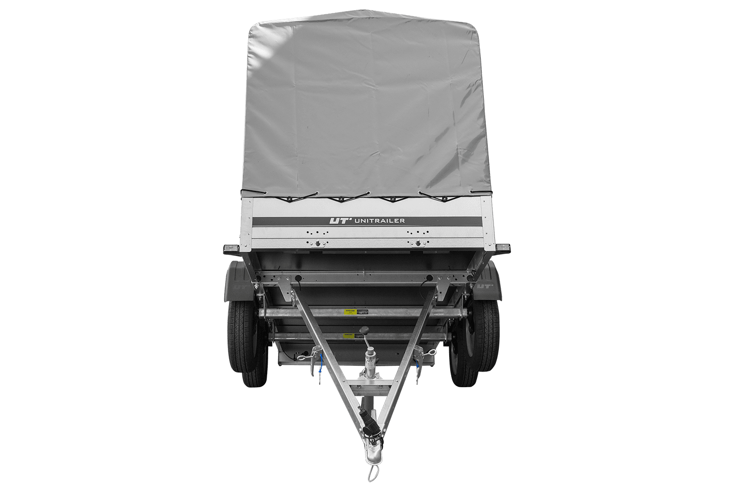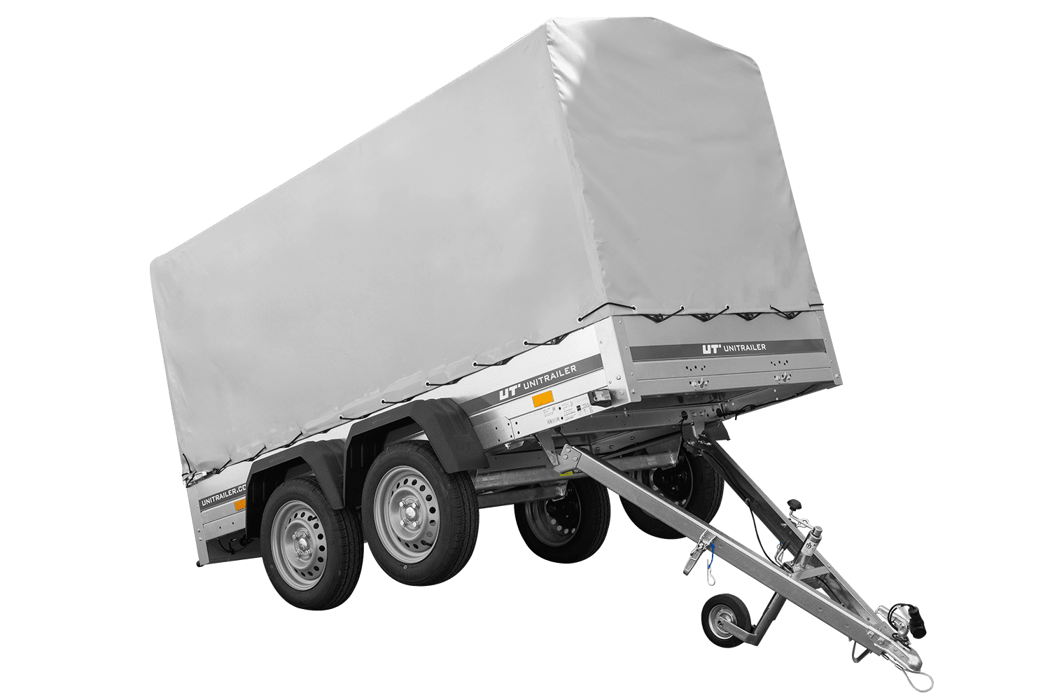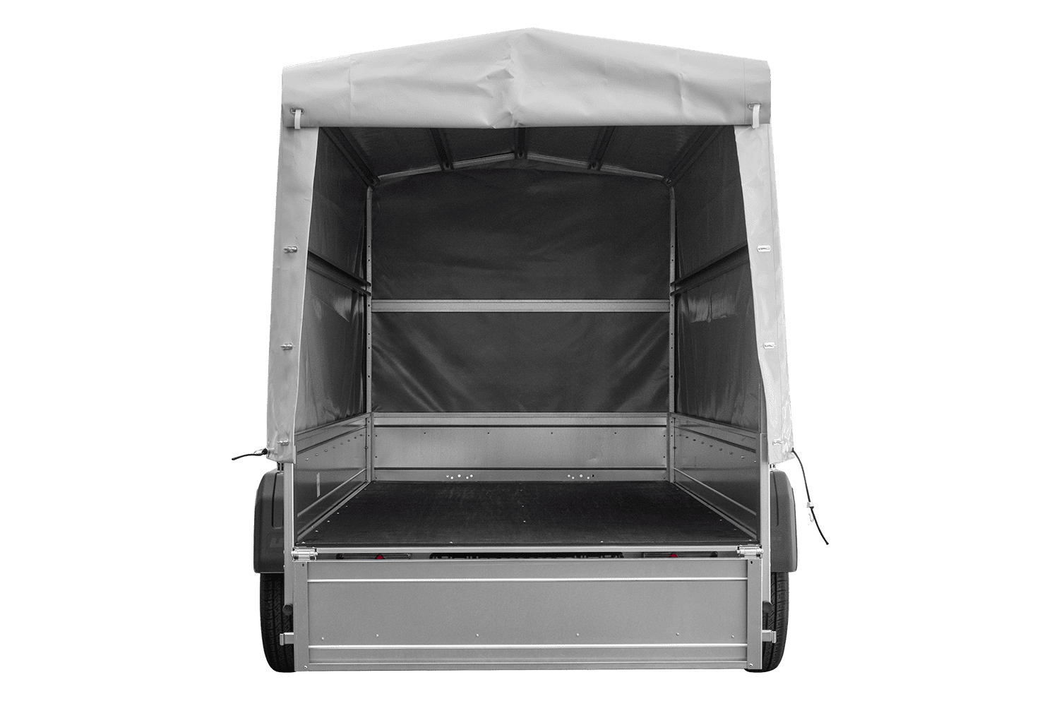 - H-1100-Hochspriegel mit grauer Plane – ein solider Hochspriegel und eine dicke und langlebige Plane, reißfest.
