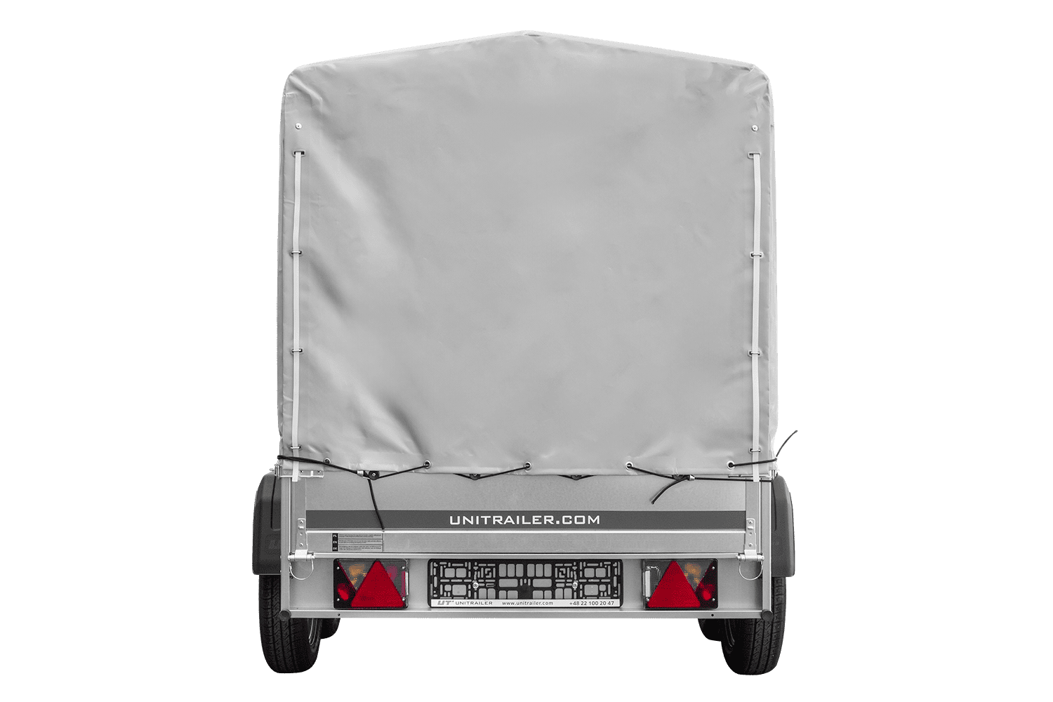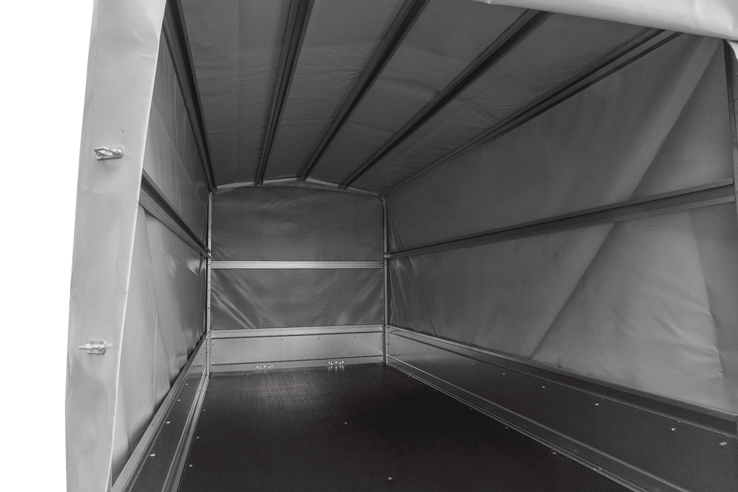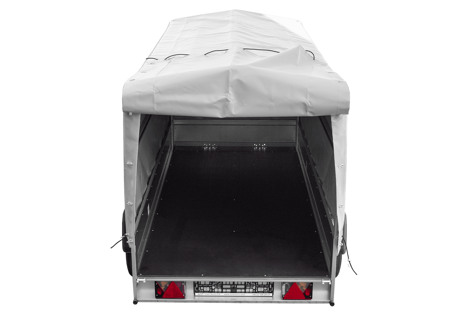 - H-1100-Hochspriegel mit grauer Plane – ein solider Hochspriegel und eine dicke und langlebige Plane, reißfest.
