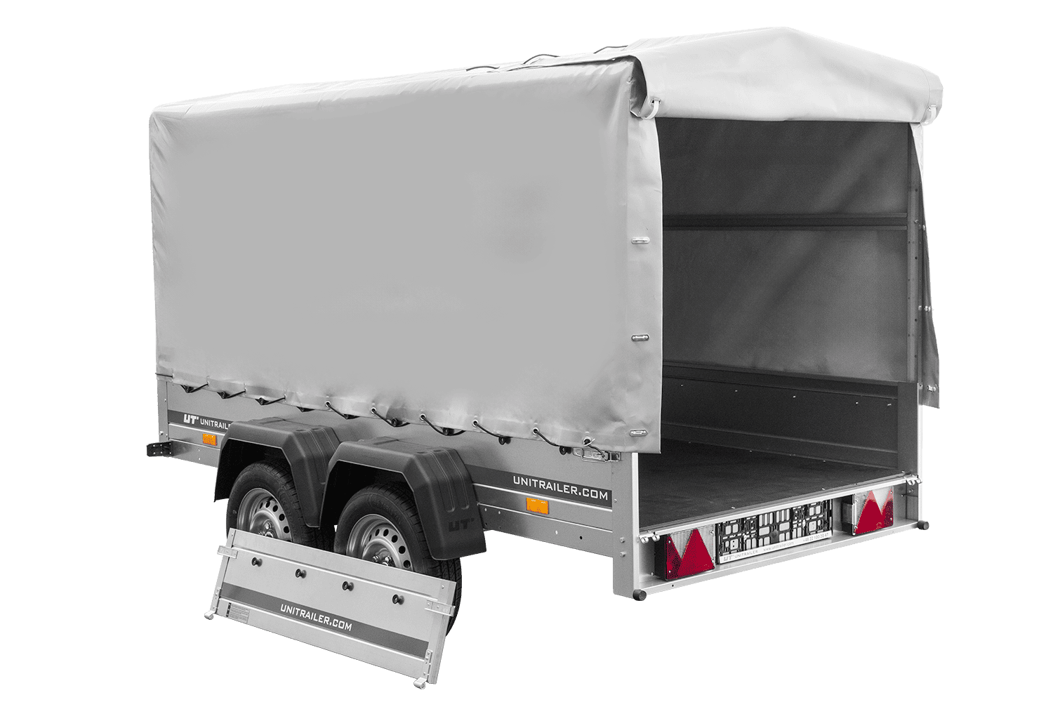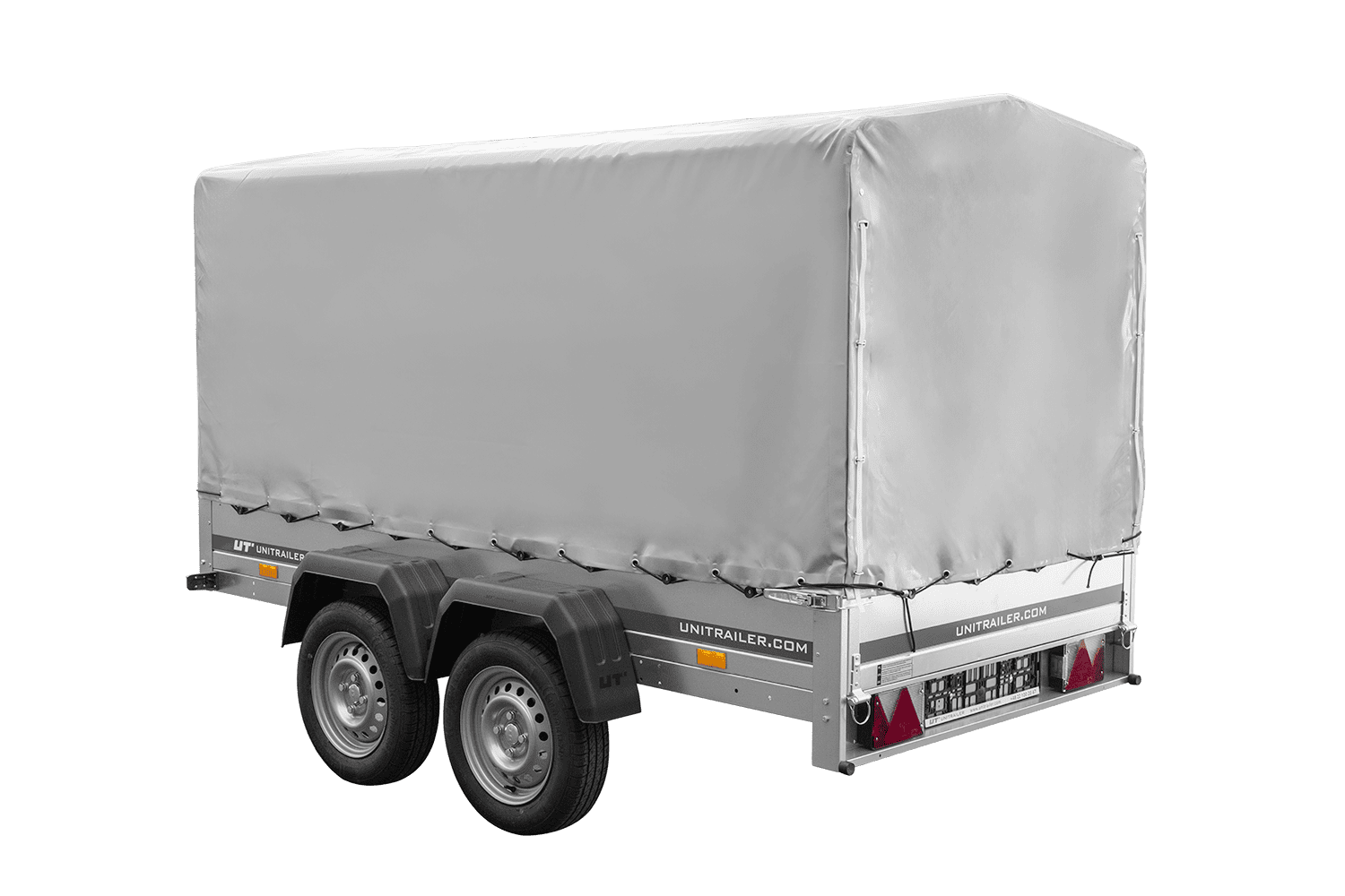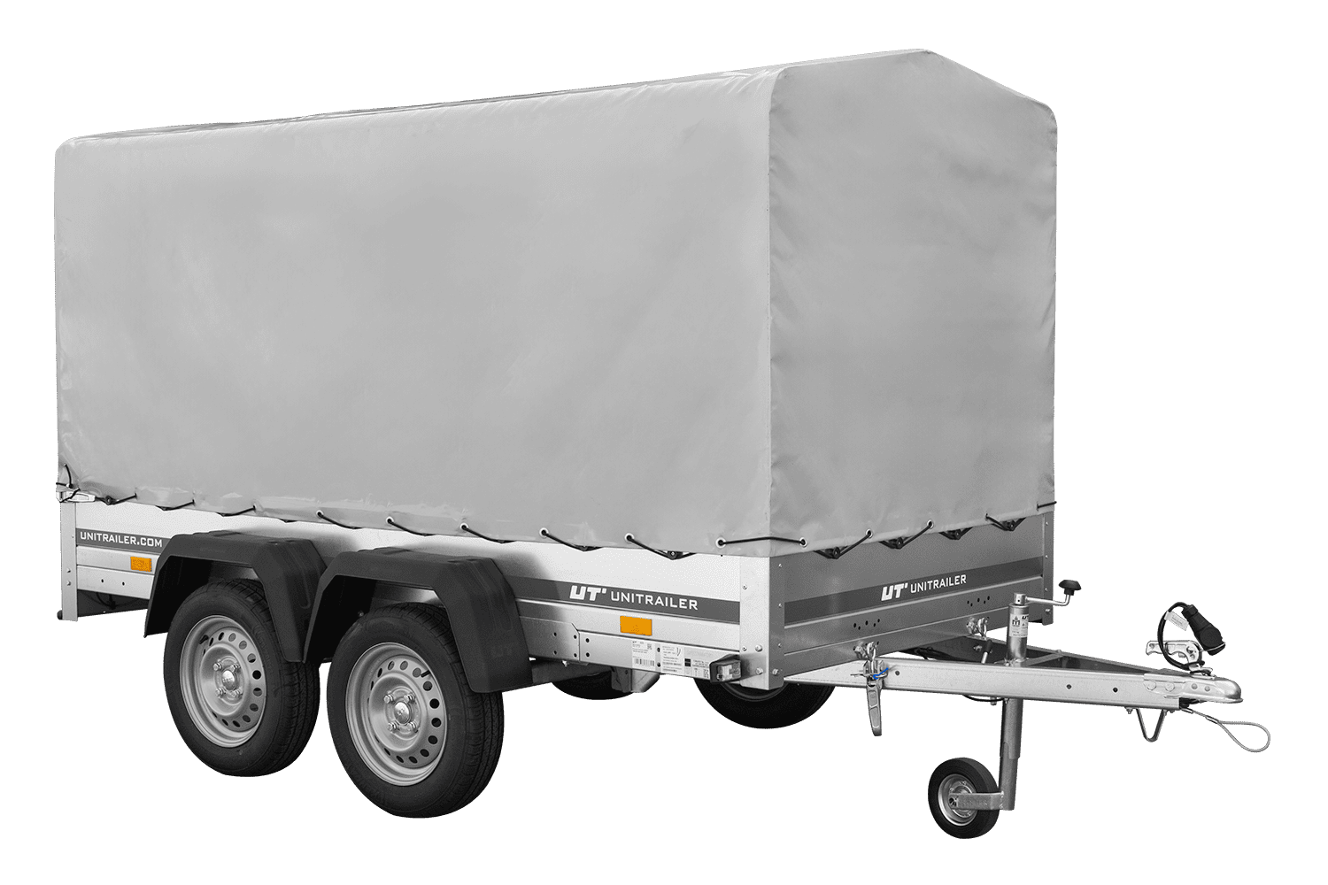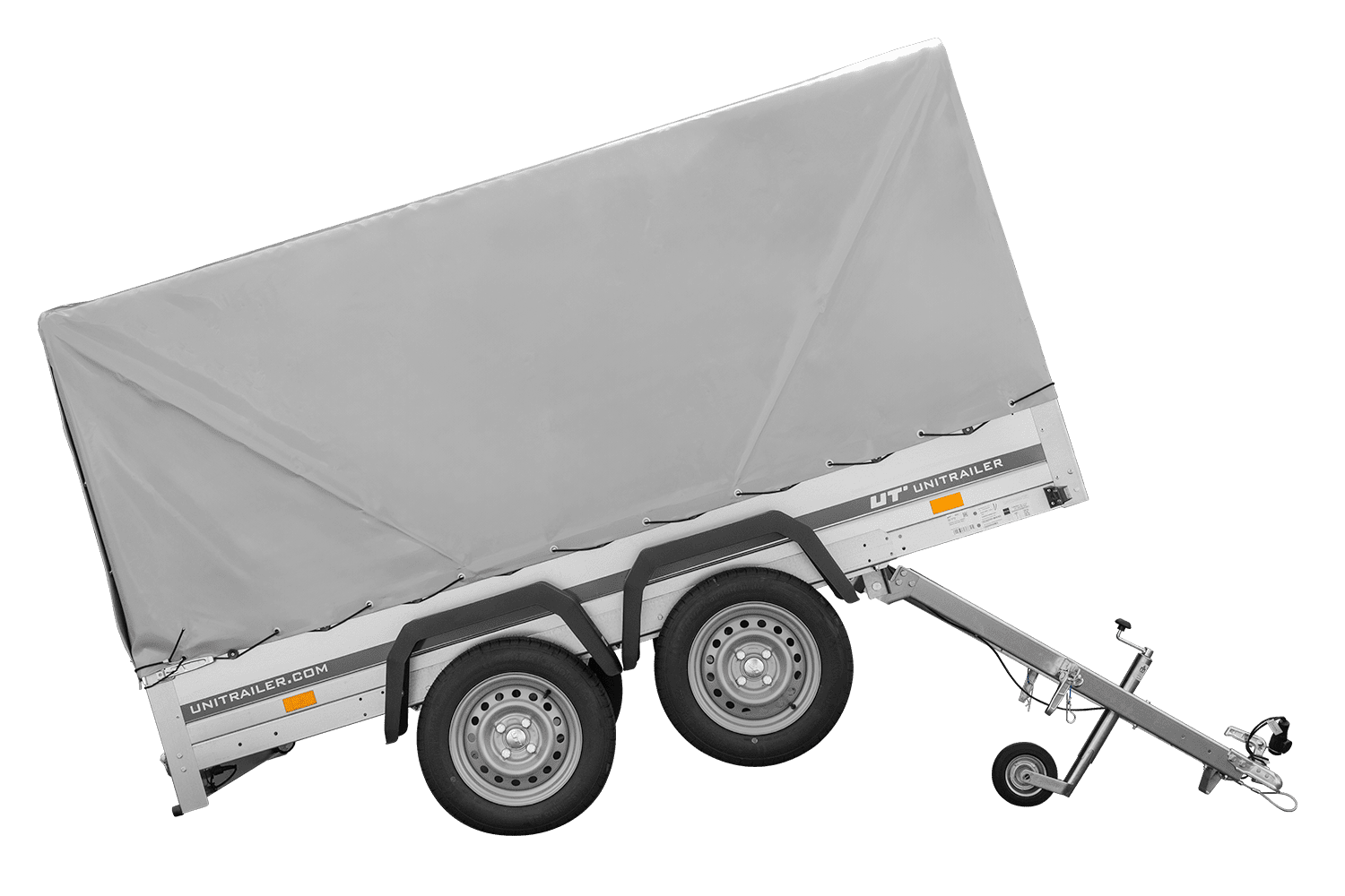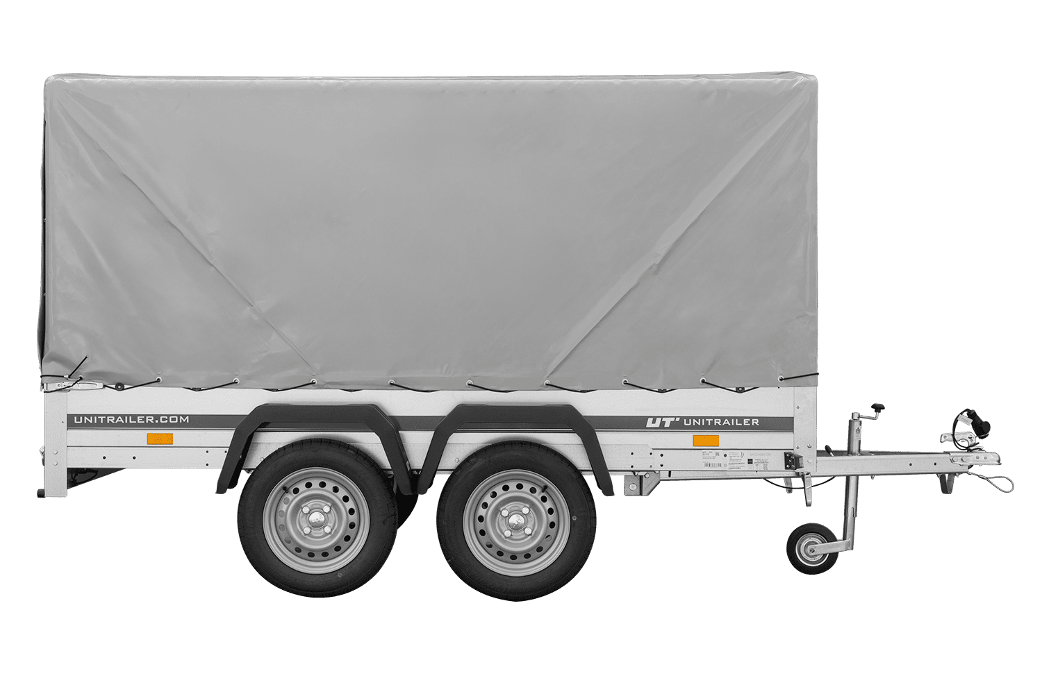 Der Anhänger Garden Trailer 264/2 KIPP MIT STÜTZRAD, H-1100-HOCHSPRIEGEL UND GRAUER PLANE