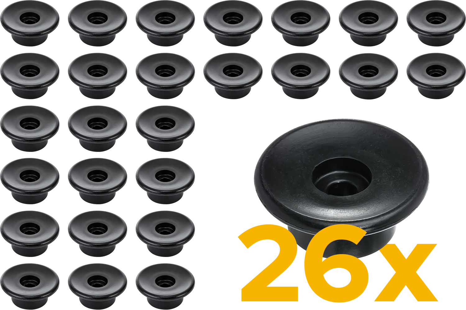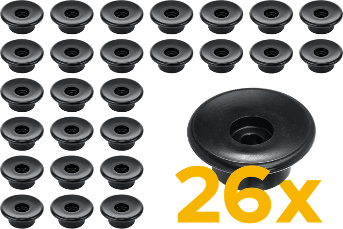 - Ein Set aus 26 Seitenwandrollen mit 30 mm Durchmesser für Autoanhänger und Lieferwagen. Zur Befestigung von Abdeckungen, Netzen und Planen an der Seitenwand mittels elastischer Seile.