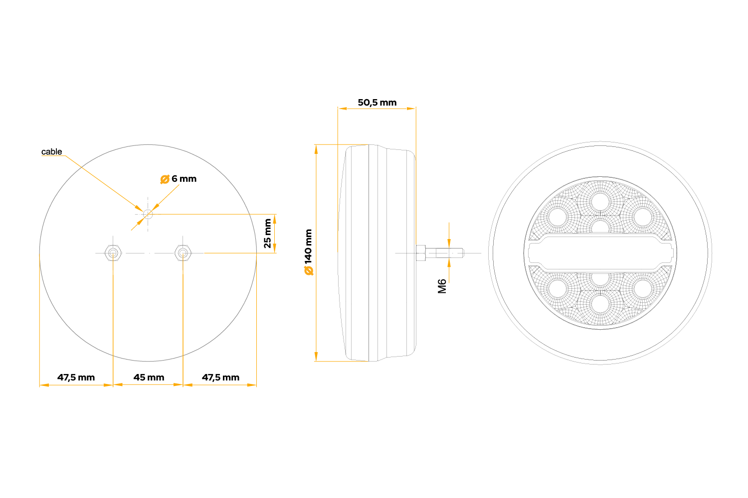 Die LED-Rückleuchte FT-113 von FRISTOM ist für den Einbau sowohl auf der linken als auch auf der rechten Seite vorgesehen und hat folgende Abmessungen: Durchmesser 140 mm, Tiefe 50,5 mm . Es ist für den Betrieb im Spannungsbereich von 12–24 V geeignet und wird in Anhängern, Lastkraftwagen und Abschleppwagen eingesetzt, was seine Universalität unterstreicht . Ausgestattet mit einem 1 m langen Kabel ermöglicht es eine einfache und schnelle Installation. Dank der Verwendung von LED-Technologie gewährleistet die Lampe eine hohe Effizienz, Langlebigkeit und Energieeffizienz und garantiert so Sicherheit bei verschiedenen Straßenbedingungen. Die Struktur der Lampe ist resistent gegen Stöße und mechanische Beschädigungen und verfügt außerdem über einen elektrischen Schutz gegen Verpolung, was ihre Zuverlässigkeit unter schwierigen Betriebsbedingungen weiter erhöht.