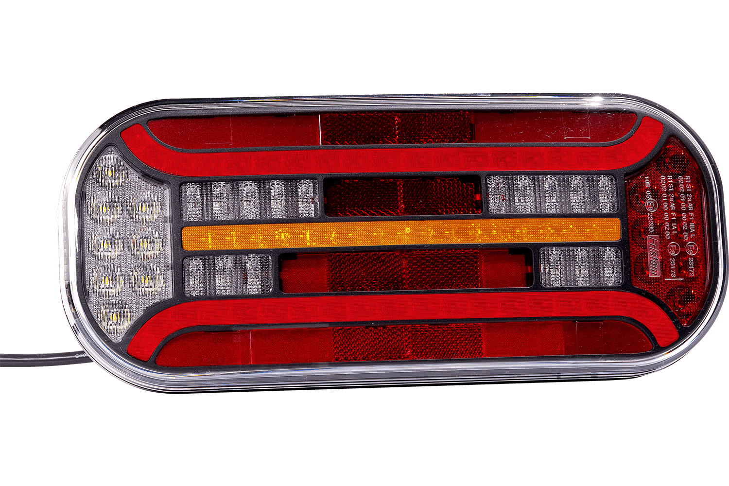 Die Lampe hat sechs Funktionen: Positionslicht , das die Sichtbarkeit des Fahrzeugs bei Nachtfahrten gewährleistet; dynamischer Blinker , der dank der sequentiellen Beleuchtung der LEDs einen sanften Effekt der Lichtbewegung in Abbiegerichtung erzeugt und so die Sichtbarkeit der Signale für andere Verkehrsteilnehmer erhöht ; intelligent Stopplicht , Die STOP-Funktion ist teilweise beleuchtet, wenn der Nebelscheinwerfer eingeschaltet ist . Rückfahrlicht , das Rückwärtsmanöver erleichtert, indem es die Sicht hinter dem Fahrzeug verbessert ; Nebelscheinwerfer , der die Sicherheit bei schwierigen Wetterbedingungen wie Nebel oder starkem Regen erhöht ; und ein Reflektor , der die Sichtbarkeit des Fahrzeugs erhöht. Die Lampe verfügt über eine E9-Zulassung und ein EMV-Zertifikat .