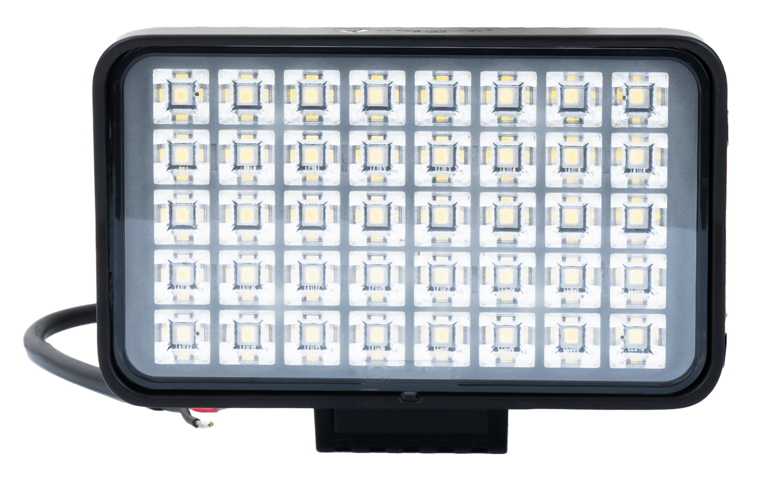 Die Lampe ist mit 40 OSRAM-Dioden mit einer Leistung von 40 W und einer Helligkeit von 3200 Lumen ausgestattet. Strahlt ein neutralweißes Licht mit einer Temperatur von 5700 K aus und gewährleistet so hervorragende Sichtbarkeit bei Nacht und bei Arbeiten unter Bedingungen mit eingeschränkter Sicht. Die diffuse Linse leuchtet den Arbeitsbereich gleichmäßig aus und macht sie ideal sowohl für Präzisionsaufgaben als auch für die Beleuchtung großer Flächen .
