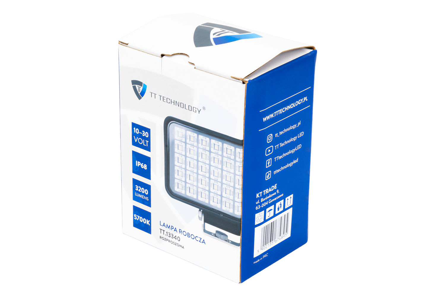 Die Arbeitsleuchte TT.13340 von TT TECHNOLOGY ist eine universelle LED- Lichtquelle, die für Arbeiten unter schwierigen Bedingungen konzipiert ist. Es eignet sich perfekt für Nutzfahrzeuge, Land- und Baumaschinen sowie oder als Zusatzbeleuchtung für LKWs. Es zeichnet sich durch eine solide Bauweise mit den Abmessungen: Breite 154 mm, Höhe 122 mm, Tiefe 49 mm , sowie einer Stromversorgung im Spannungsbereich von 10-30 V aus. Dank des 0,5 m langen Kabels ermöglicht es eine einfache Installation und Verbindung auch an schwer zugänglichen Stellen. Das Lampengehäuse besteht aus langlebigen Materialien, die eine hohe Widerstandsfähigkeit gegen Stöße und mechanische Beschädigungen unter anspruchsvollen Arbeitsbedingungen gewährleisten.