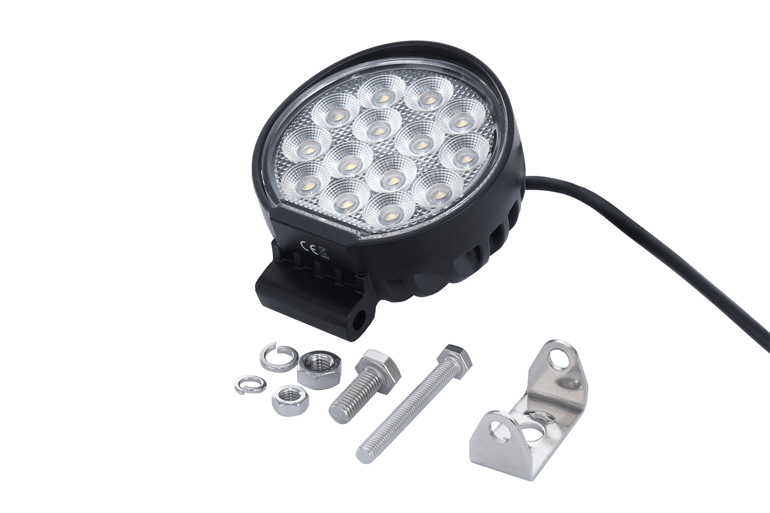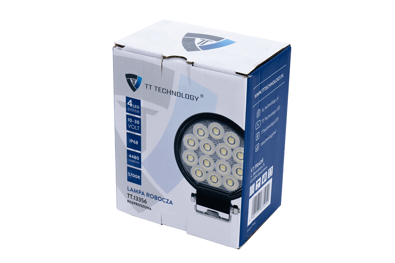 - Die runde Arbeitsscheinwerfer TT.13356 von TT TECHNOLOGY hat eine Leistung von 56 W und strahlt 4480Lm neutralweißes Licht (5700 K). Ausgestattet mit 56 LEDs ist es ideal für Landmaschinen, Baumaschinen und Nutzfahrzeuge.