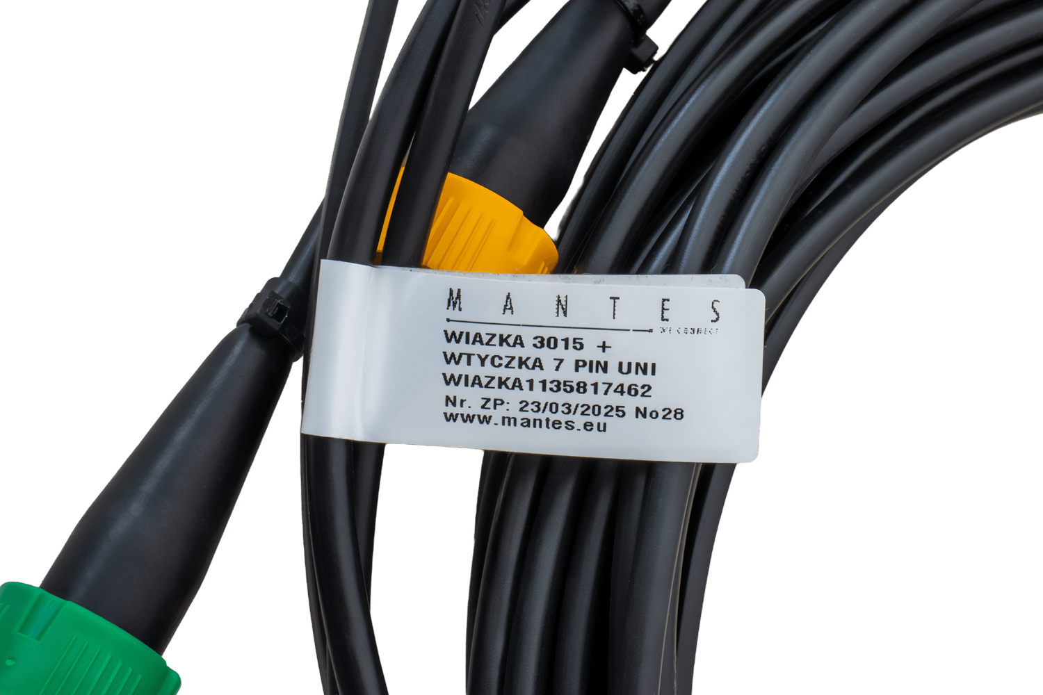 - MANTES-Elektroinstallation mit einem 5 Meter langen Kabel, das mit einem 7-poligen Stecker abgeschlossen ist. Der Kabelsatz gewährleistet die einwandfreie Funktion der Beleuchtung im PKW-Anhänger.