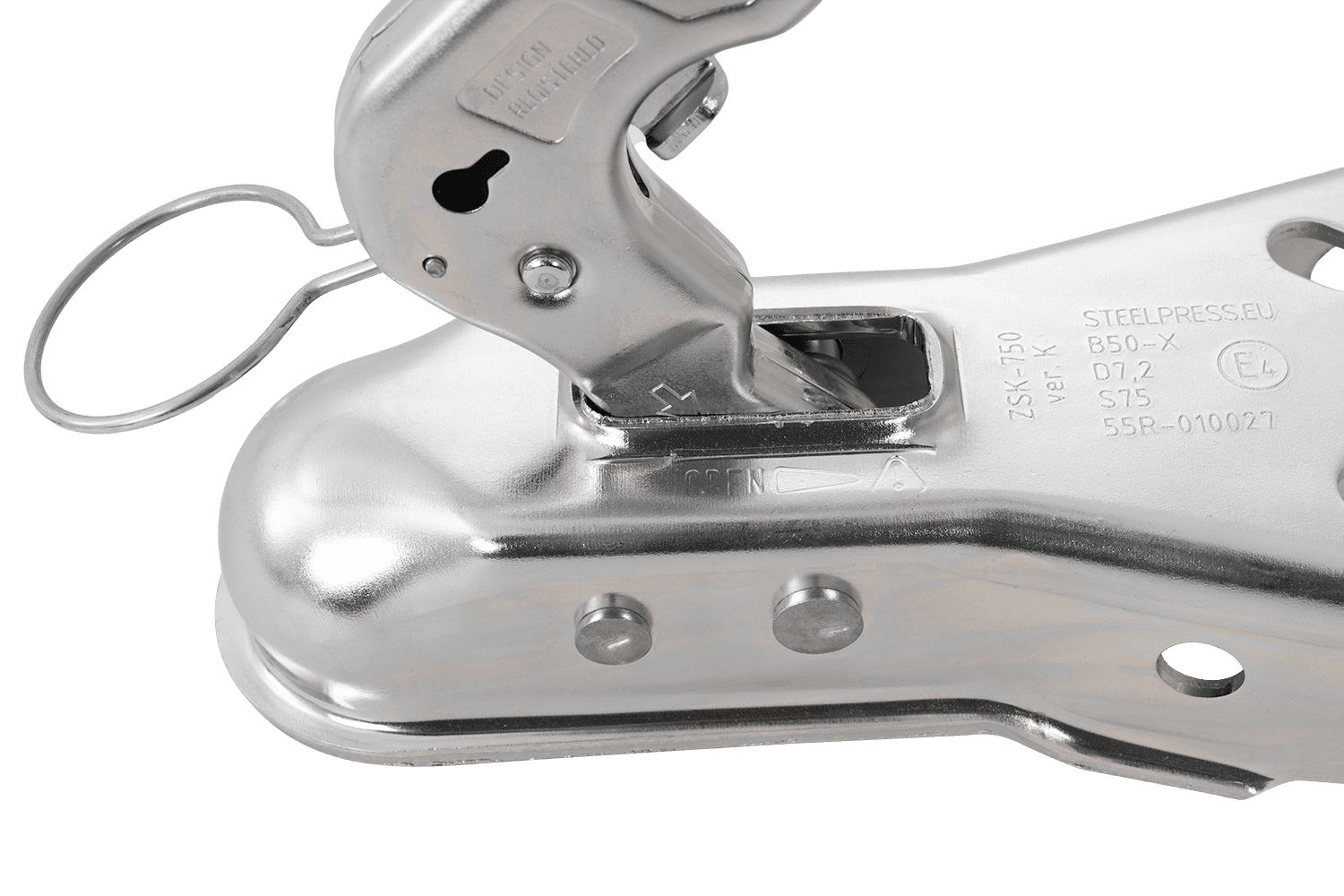 - Die Kugelkupplung ZSK-0750K mit STEELPRESS-Steckeraufnahme ist für Anhänger mit einem Gewicht bis 750 kg ausgelegt. Montiert auf einer V-Deichsel dient er zur sicheren Verbindung des Anhängers mit dem Zugfahrzeug.
