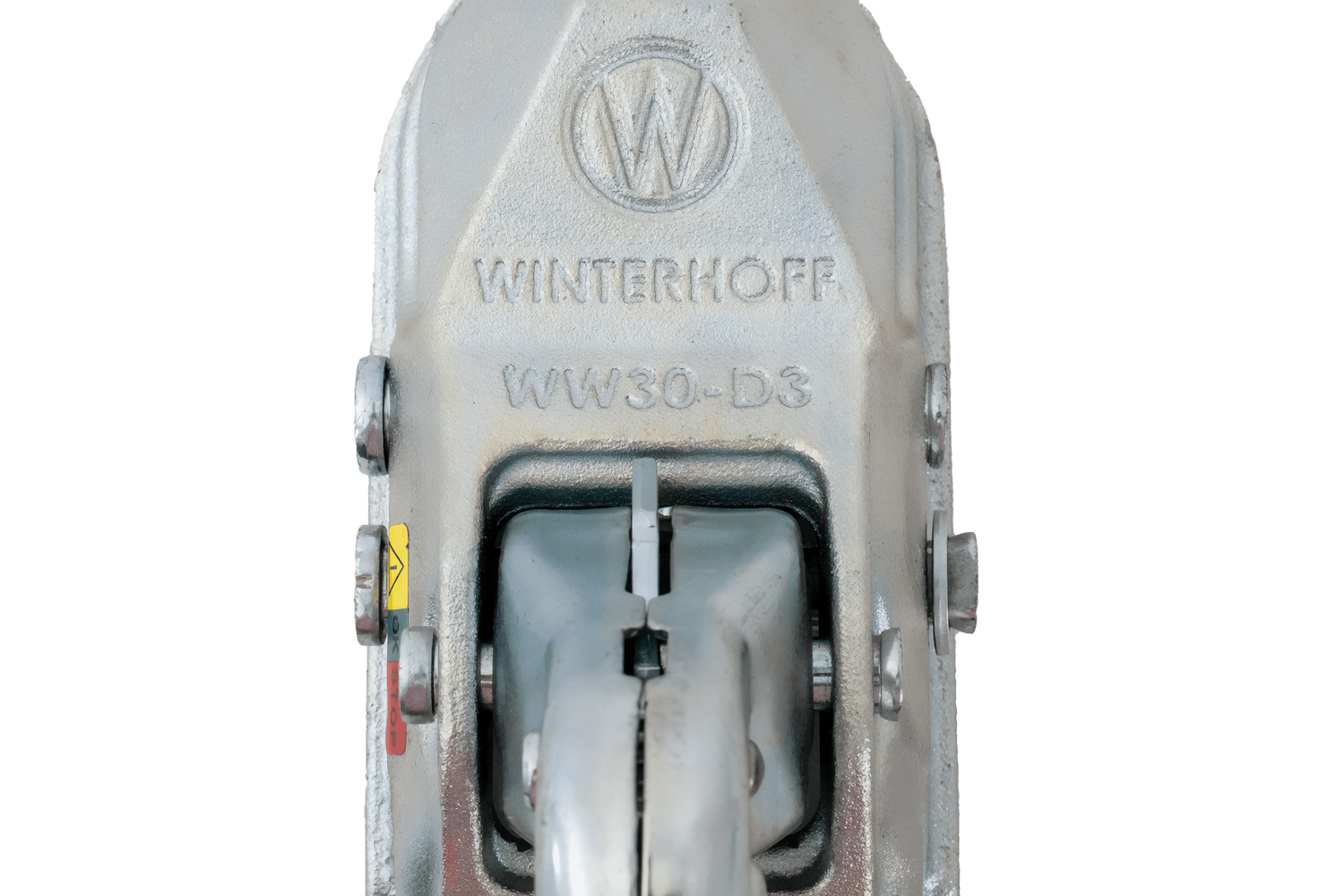 - Kugelkupplung WW 30-D3-1414 von WINTERHOFF, geeignet für gebremste Anhänger und Autotransportanhänger bis 3000 kg. Montiert auf einer 50-51 mm Rohrprofil-Deichsel sorgt es für eine sichere Verbindung des Anhängers mit dem Zugfahrzeug.