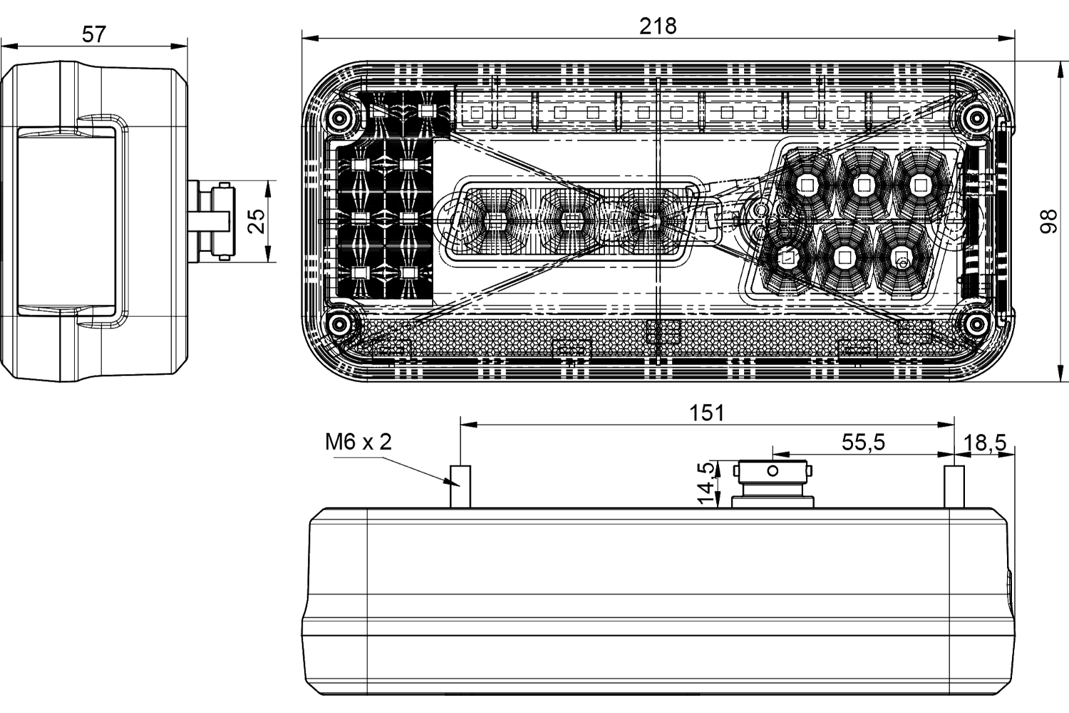- Das DPT30 LED DOBPLAST Rücklicht ist für die Linksmontage konzipiert. Es bietet sechs Funktionen: Positionslicht, Bremslicht, Nebellicht, Blinker, Kennzeichenbeleuchtung und ein reflektierendes Dreieck.