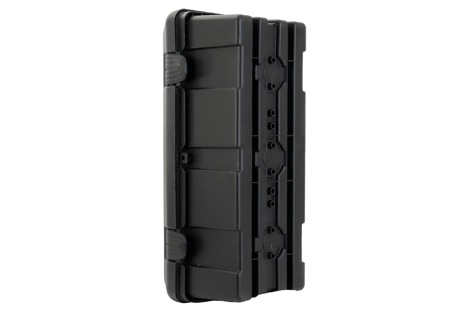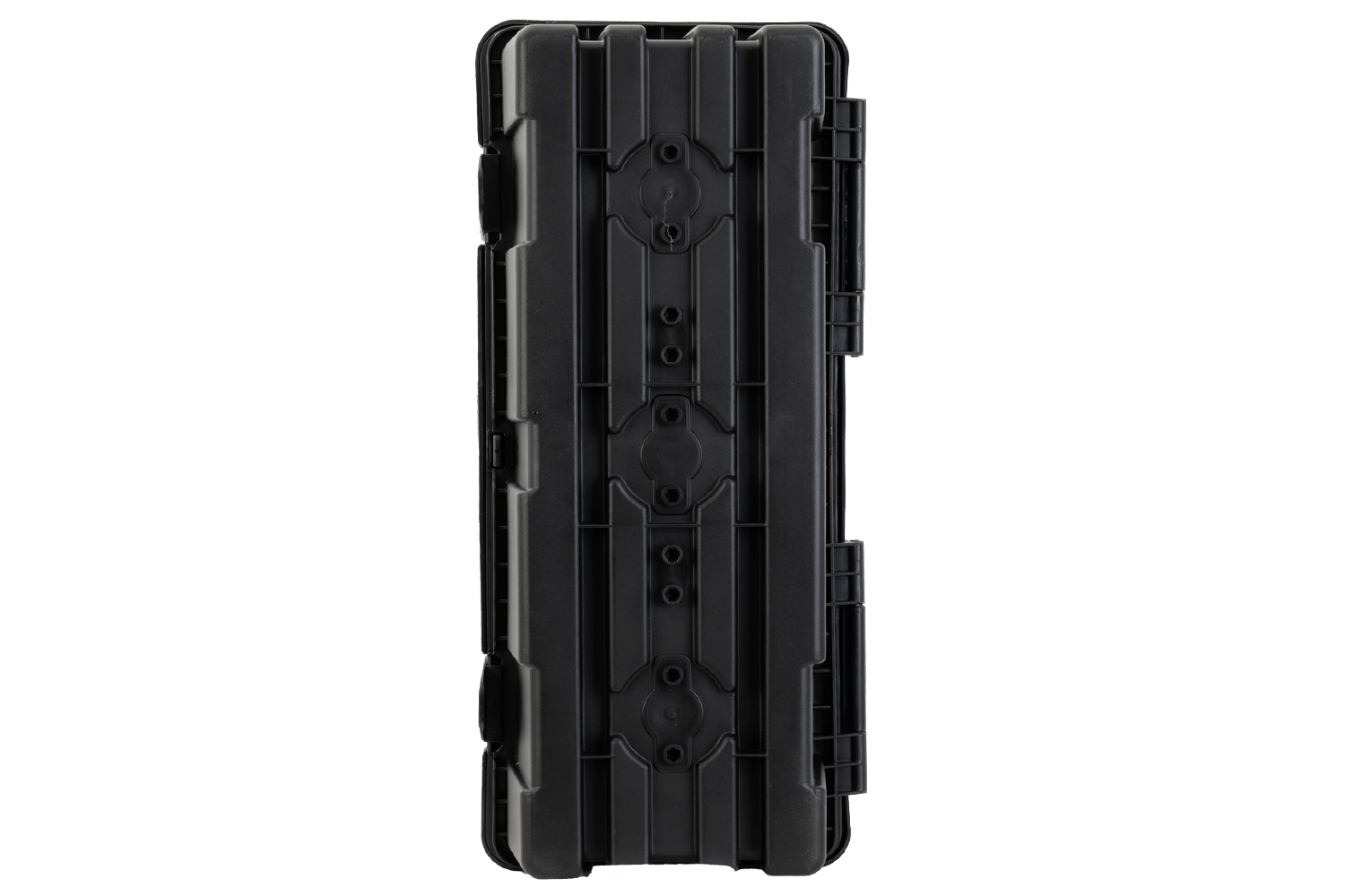 Die Feuerlöscherbox DAKEN ADAMANT 82010 mit den Maßen 671 mm Höhe, 310 mm Breite und 247 mm Tiefe ist eine praktische und zuverlässige Lösung zur Aufbewahrung eines 9-kg-Feuerlöschers in Fahrzeugen und Anhängern. Die schwarze Box ist mit zwei Feuerlöscherhaltern mit einem Durchmesser von 170–190 mm und einem Sichtfenster ausgestattet, das eine schnelle Überprüfung des Vorhandenseins und Zustands des Feuerlöschers ermöglicht, ohne ihn öffnen zu müssen. Dies erleichtert die regelmäßige Inspektion und gewährleistet eine komfortable Nutzung .