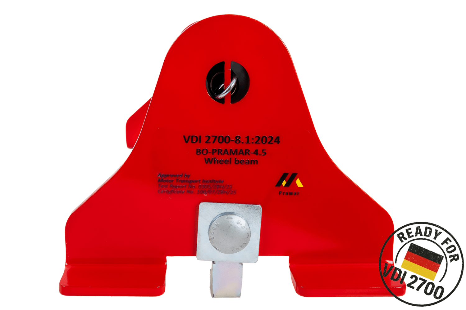 Der Radstopper von PRAMAR ist nach der Norm VDI 2700 zur Sicherung von Fahrzeugen bis 4,5 t zertifiziert , was seine Sicherheit und Verarbeitungsqualität gemäß den europäischen Normen zur Ladungssicherung bestätigt. Die Norm VDI 2700 enthält Richtlinien für die ordnungsgemäße Sicherung von Fahrzeugen auf Transportplattformen. Die Erfüllung ihrer Anforderungen bedeutet, dass das Produkt auf Festigkeit, Stabilität und Funktionalität unter Straßenbedingungen geprüft wurde. Dies gibt dem Benutzer die Gewissheit, dass der Schließfachschrank die strengen Anforderungen zum Schutz transportierter Fahrzeuge erfüllt – sowohl im gewerblichen als auch im privaten Einsatz.