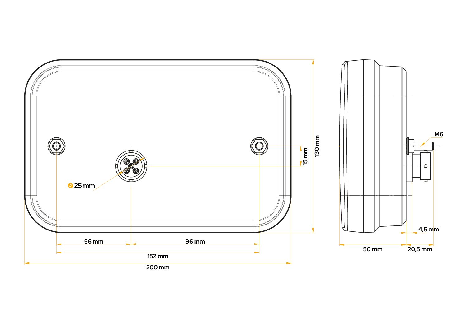 Die für die Montage auf der rechten Seite vorgesehene FT-270 LED CANBUS Rückleuchte von FRISTOM hat folgende Maße: Breite 200 mm, Höhe 130 mm, Tiefe 50 mm . Ausgelegt für einen Betrieb in einem Spannung von 12 V kann es in leichten Anhängern, Bussen und Anhängern eingesetzt werden, was seine Universalität unterstreicht. Ausgestattet mit einem 5-poligen Bajonettstecker ermöglicht es eine einfache und schnelle Installation. Dank der eingesetzten LED-Technologie bietet die Lampe hohe Leistung, Haltbarkeit und Energieeffizienz und gewährleistet so Sicherheit bei unterschiedlichen Straßenbedingungen. Die Konstruktion der Lampe ist hermetisch, widerstandsfähig gegen Stöße und mechanische Beschädigungen und verfügt zudem über einen elektrischen Verpolungsschutz, was ihre Zuverlässigkeit unter schwierigen Betriebsbedingungen zusätzlich erhöht.