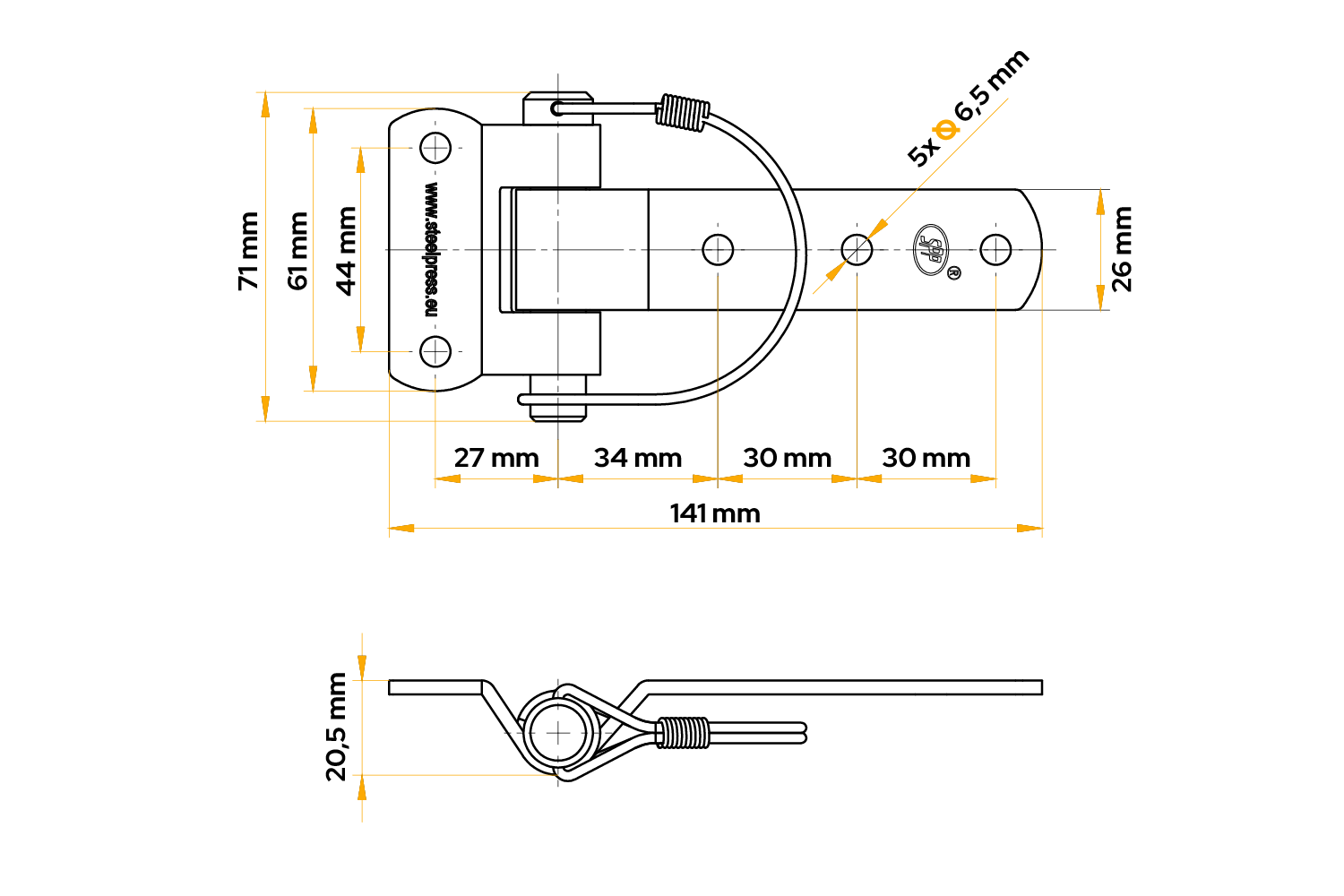 Abnehmbares Seitenscharnier STEELPRESS ZW-03.106 Anhänger Seitenmontage