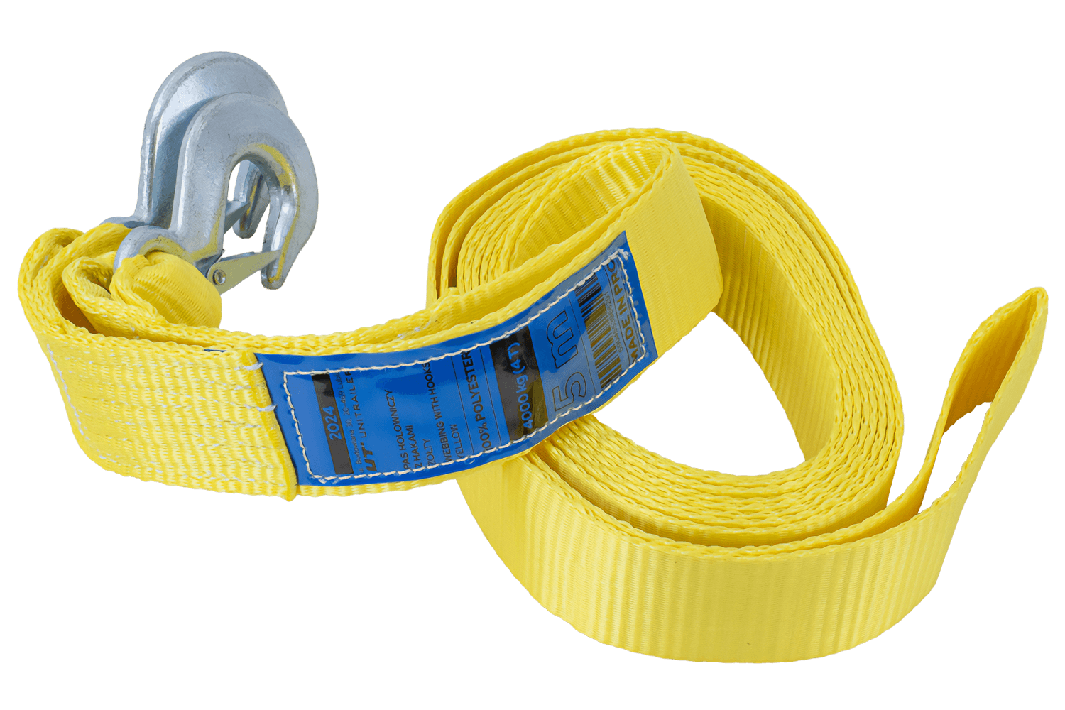 Abschleppseil mit Haken UNITRAILER Abschleppgurt 5m/50mm/4t gelb