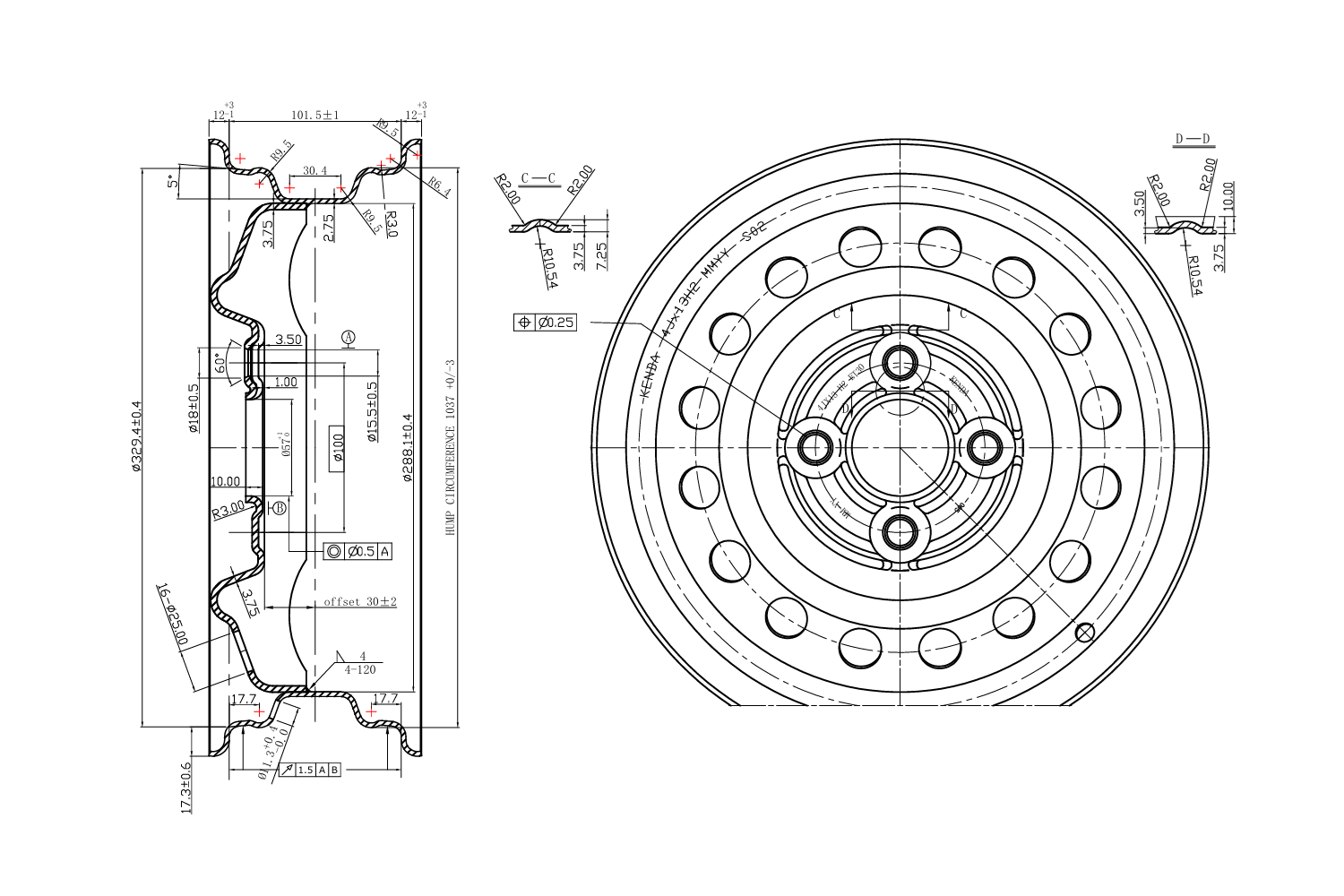 Das Querschnittsprofil der Felge bezieht sich auf die Form des inneren Teils der Felge, der sowohl den Flansch als auch die Oberfläche umfasst, auf der der Reifen aufliegt. Dieses Profil ist entscheidend für den richtigen Sitz des Reifens, seine Montage und die Gesamtpassung an der Fahrzeugnabe. Das Querschnittsprofil der H2-Felge ist eine Felge mit Doppelhump. Dieses Profil schützt den Reifen noch besser vor dem Abrutschen von der Felge. Dies ist besonders wichtig bei Sportfahrzeugen, Geländefahrzeugen oder solchen, die höheren Seitenlasten ausgesetzt sind.