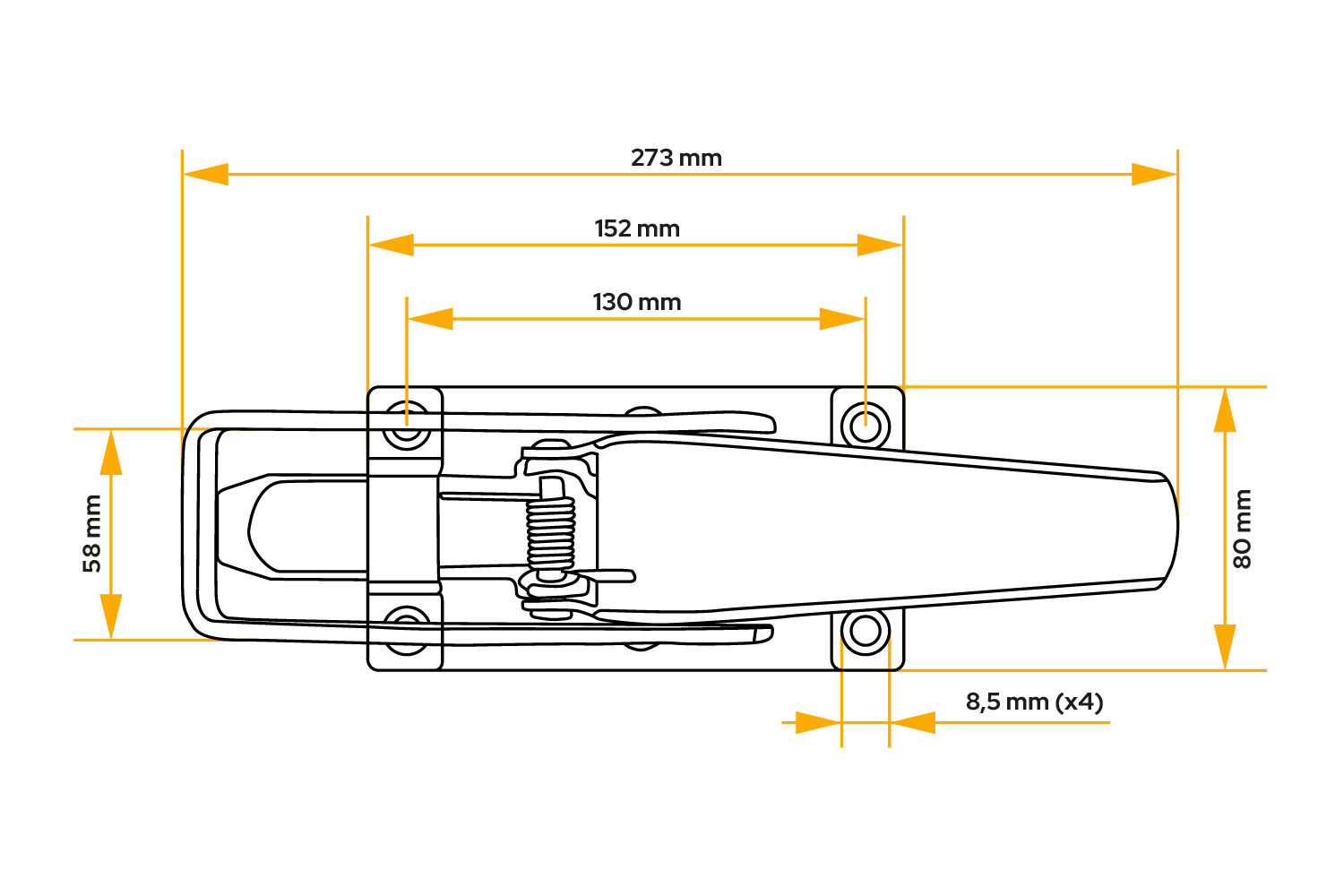 Die Seitenkupplung 417177.001 von KNOTT ist eine robuste Anhänger-Hardwarekomponente, die für die sichere und dauerhafte Befestigung der Seiten von Fracht-, Landwirtschafts- und Nutzanhängern entwickelt wurde. Die Kupplung ist 275 mm lang und hat eine Basisbreite von 80 mm , was ihre Haltbarkeit auch bei starker Beanspruchung gewährleistet .
