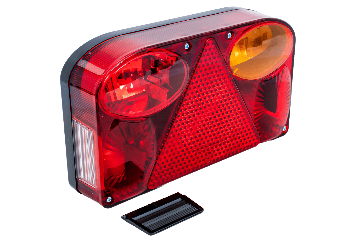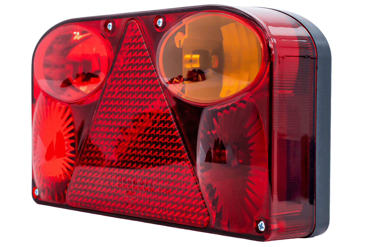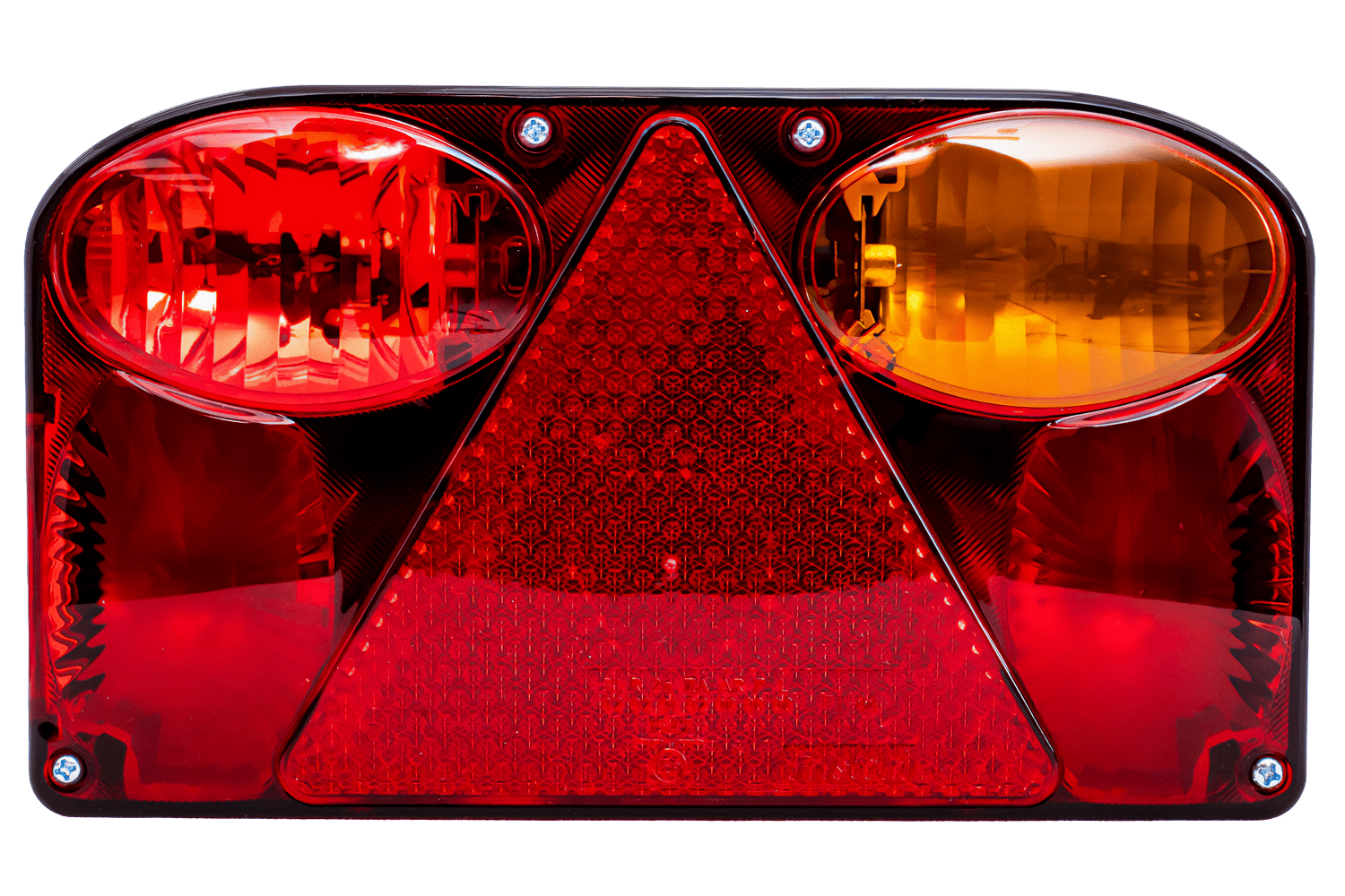 reflektierendes DreieckDie Lampe hat sechs Funktionen: Positionslicht, das die Sichtbarkeit des Fahrzeugs bei Nachtfahrten gewährleistet; Bremslicht, signalisiert Bremsen; Blinker, mit dem Sie Ihre Absicht zum Abbiegen anzeigen können; Nebellicht, das die Sicherheit bei schwierigen Witterungsbedingungen wie Nebel oder starkem Regen erhöht; eine Kennzeichenbeleuchtung, die die Sichtbarkeit des Fahrzeugkennzeichens bei Nacht gewährleistet; und ein Warndreieck, das die Sichtbarkeit des Fahrzeugs erhöht.