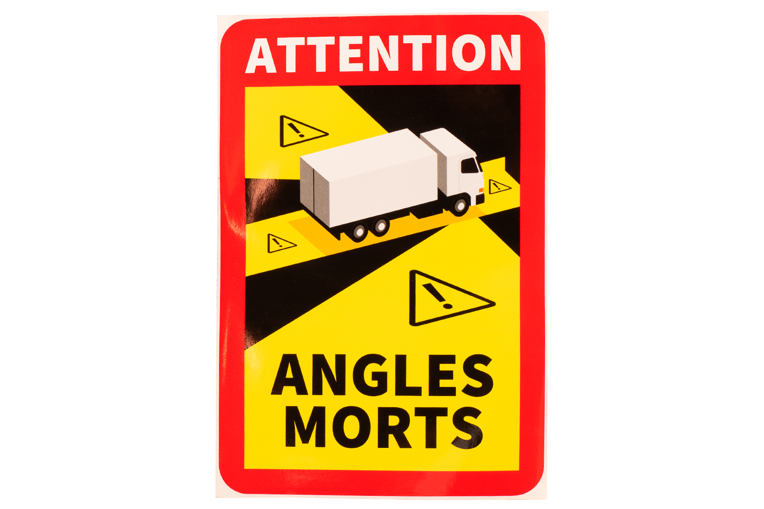 Das HERMON-Warnschild „TOTER WINKEL“ ist ab dem 1. Januar 2021 in Frankreich eine vorgeschriebene Markierung für schwere Nutzfahrzeuge. Es informiert andere Verkehrsteilnehmer, insbesondere Radfahrer und Fußgänger , über gefährliche Bereiche mit eingeschränkter Sicht rund um das Fahrzeug. Das Schild ist 250 mm hoch und 170 mm breit .
