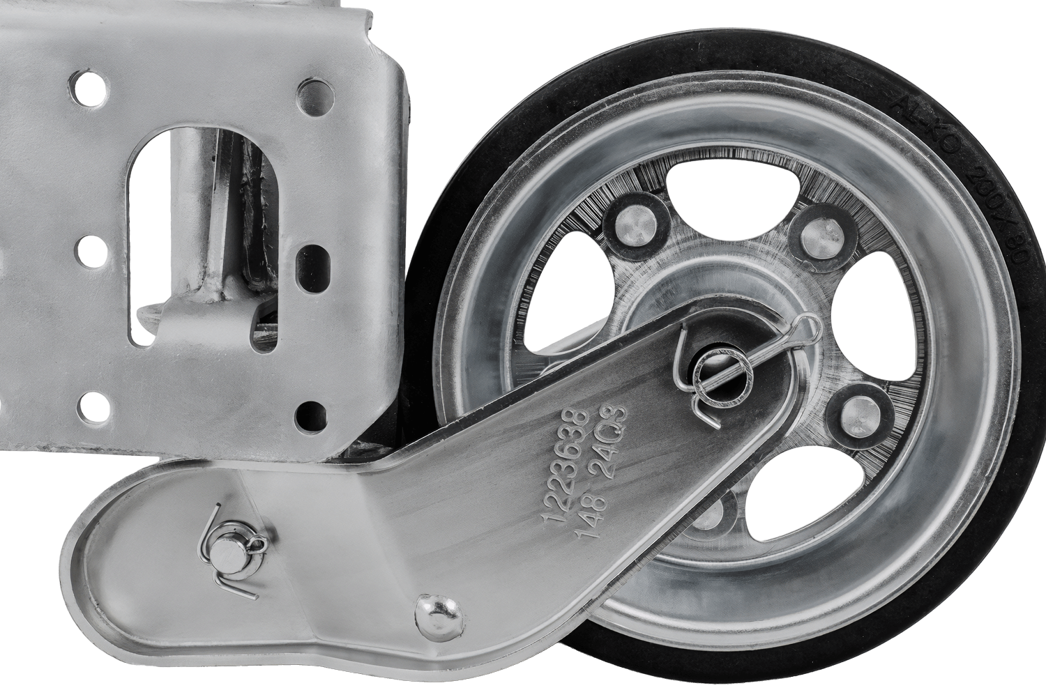 Das Stützrad besteht aus elektrolytisch verzinktem Stahl und bietet so wirksamen Korrosionsschutz und eine lange Lebensdauer, selbst bei intensiver Nutzung im Freien. Die Zinkbeschichtung schützt die Stahlkomponenten vor Feuchtigkeit, Streusalz und Witterungseinflüssen und erhöht dadurch die Haltbarkeit und Widerstandsfähigkeit der Konstruktion.