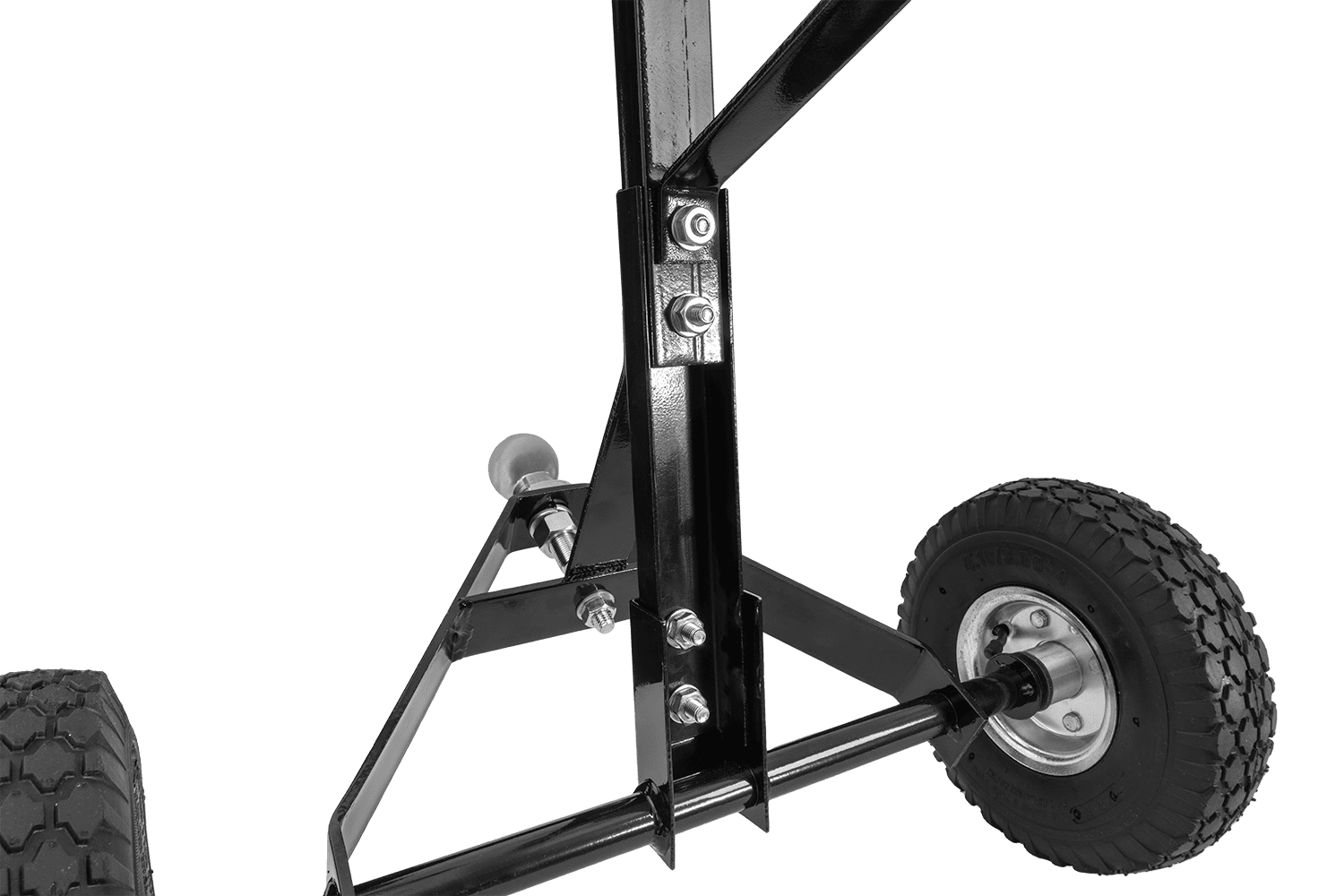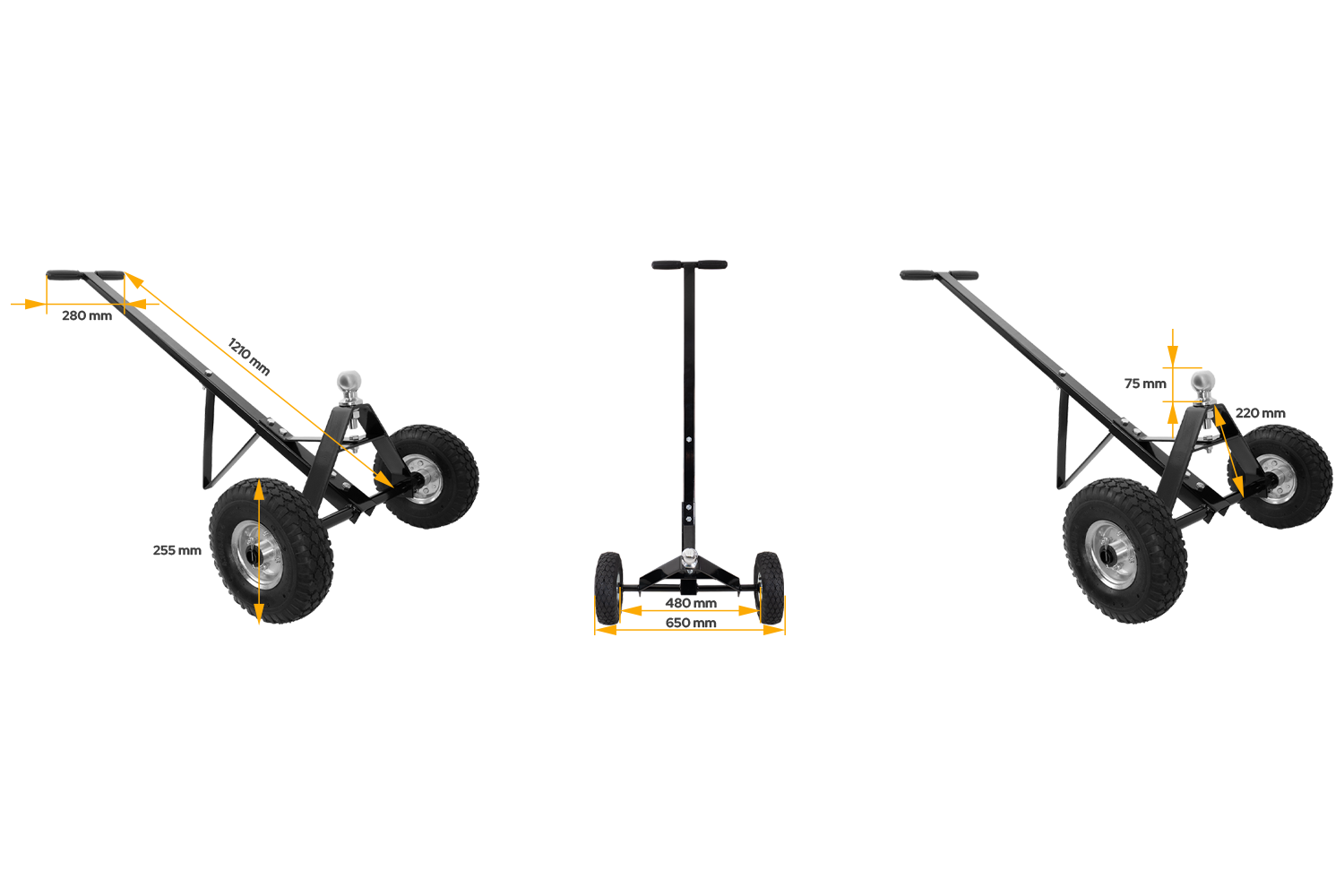 Der Rangierwagen ist ein praktisches und robustes Hilfsmittel zum manuellen Bewegen von Anhängern über kurze Distanzen, insbesondere an Orten mit beengten Platzverhältnissen , wie zum Beispiel auf Höfen, in Werkstätten oder auf Rangierplätzen. Damit lässt sich der Anhänger präzise positionieren, ohne ihn mit dem Fahrzeug verbinden zu müssen , was beim Rangieren an schwer zugänglichen Stellen oder bei Servicearbeiten äußerst nützlich ist. Dank der großen, aufblasbaren Räder überwindet der Kinderwagen problemlos Unebenheiten im Gelände und sorgt so für eine ruhige und sichere Fahrt. Dieser Wagen erhöht den Komfort bei der Anhängernutzung, spart Zeit und Mühe und verbessert die Sicherheit beim Manövrieren unter schwierigen Bedingungen. Es ist ein unverzichtbares Hilfsmittel für Personen, die häufig Anhänger bewegen – sowohl im privaten als auch im beruflichen Einsatz –, da es eine schnelle und kontrollierte Bedienung des Fahrzeugs ermöglicht, ohne dass eine zusätzliche Person hinzugezogen oder ein Auto verwendet werden muss.