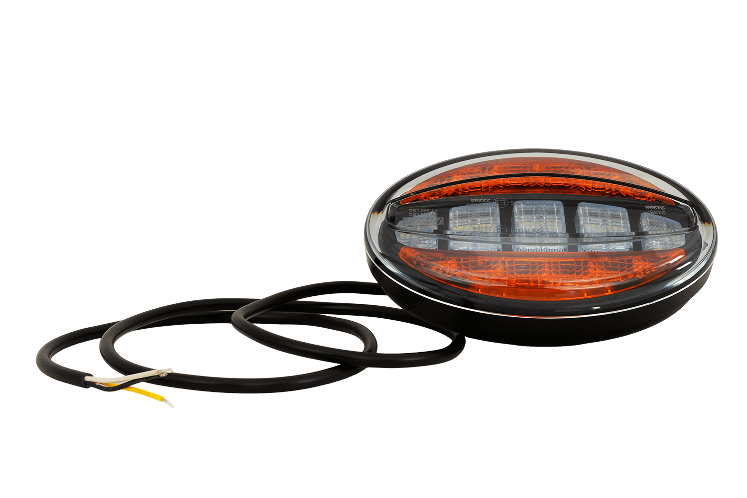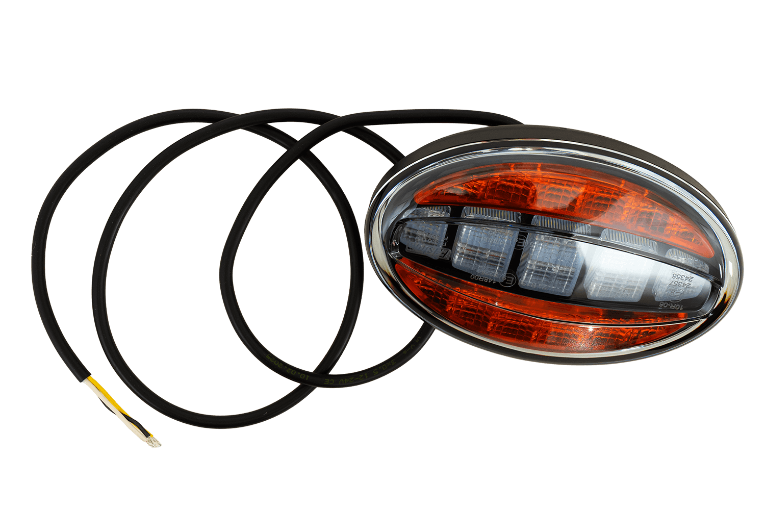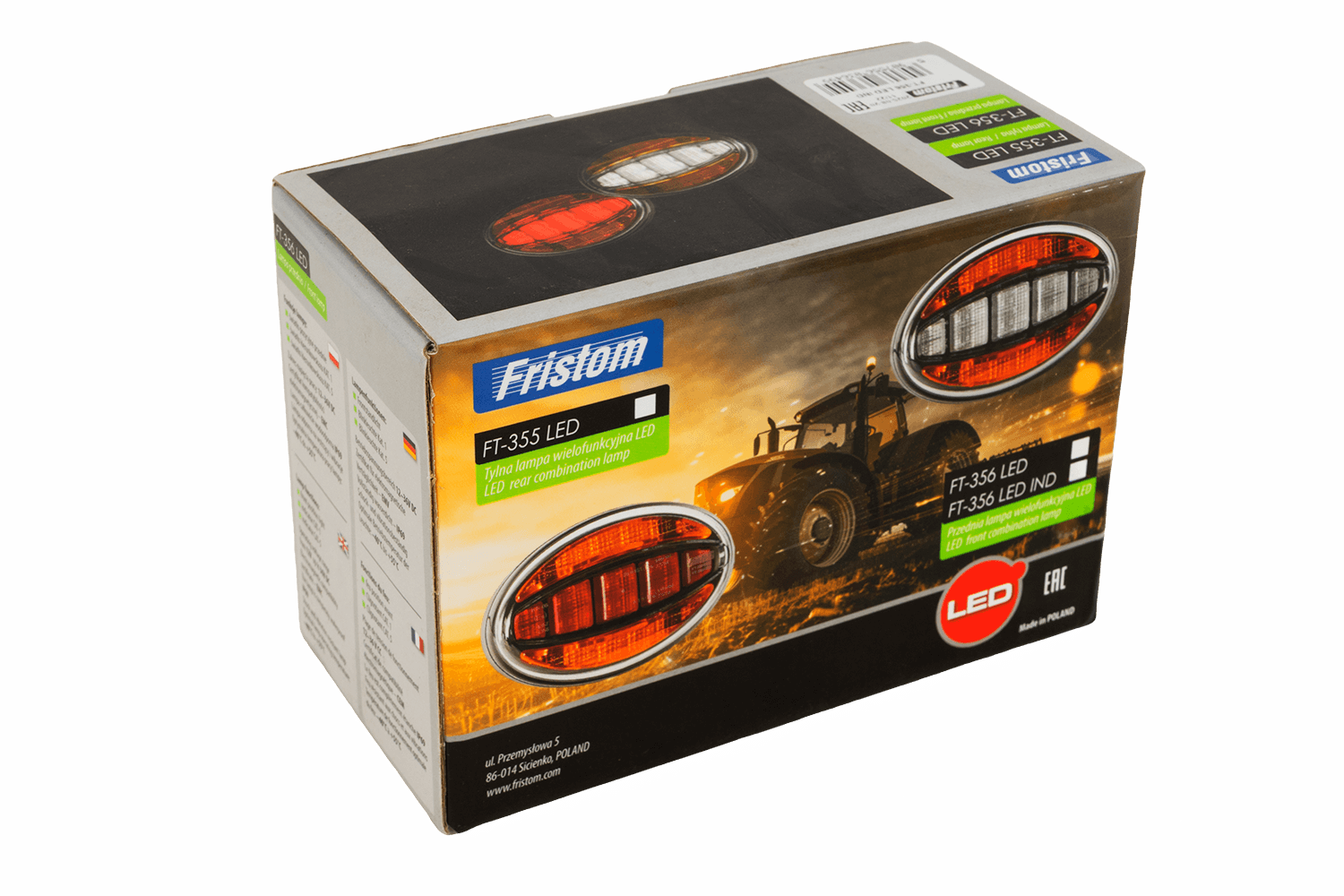 - FT-356 LED FRISTOM Frontleuchte, zur Montage auf der linken oder rechten Seite. Es bietet drei Funktionen: Positionslicht sowie Blinker vorne und hinten. Es wird häufig in landwirtschaftlichen Fahrzeugen wie Traktoren, Maschinen, Mähdreschern und Baggern