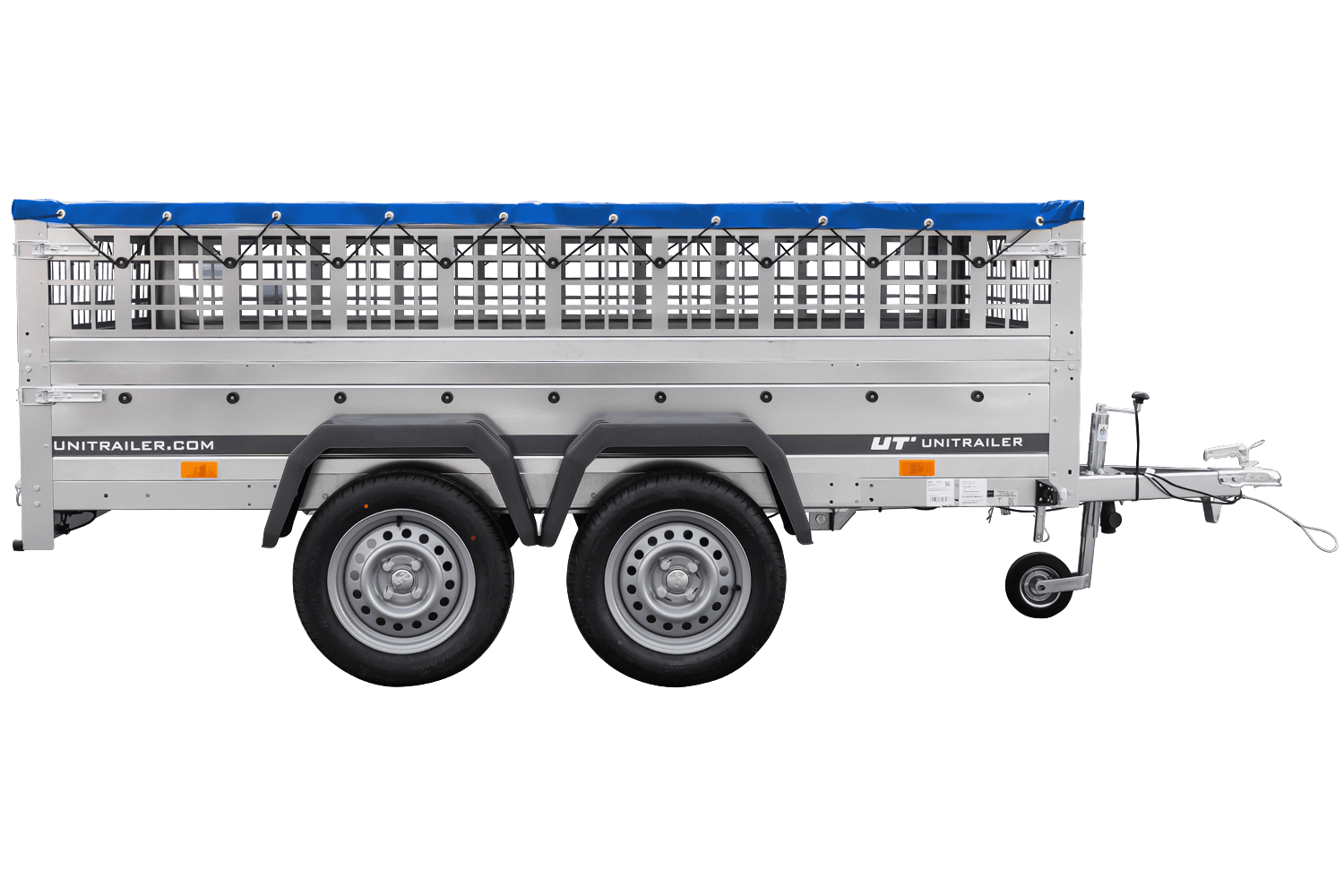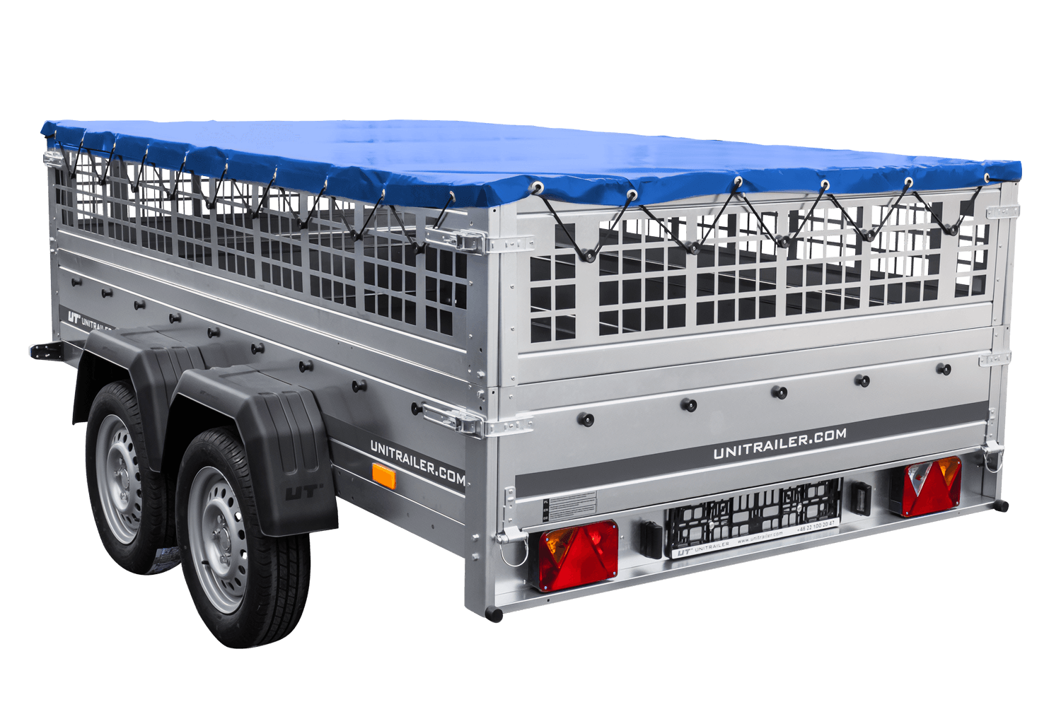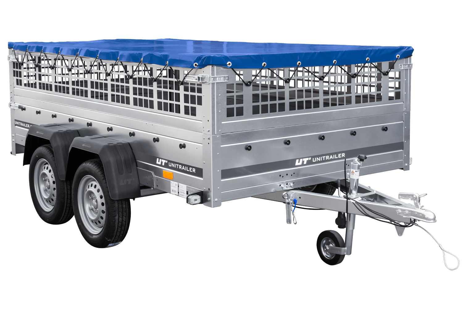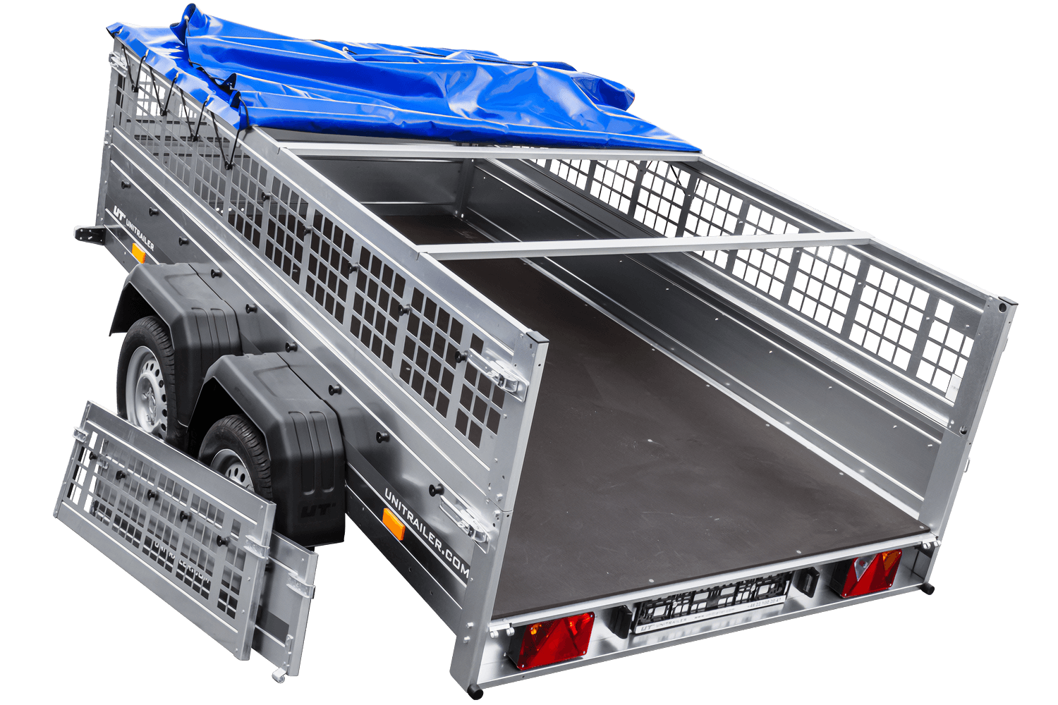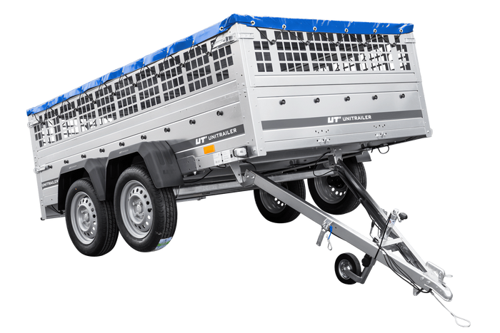 UNITRAILER GARDEN 265/2 KIPP Anhänger mit Gitterwänden, H-0 Rahmen und blauer Abdeckung