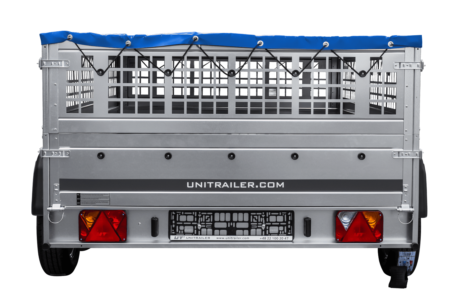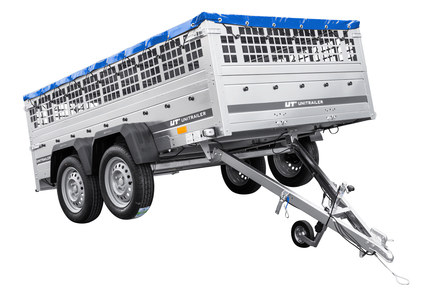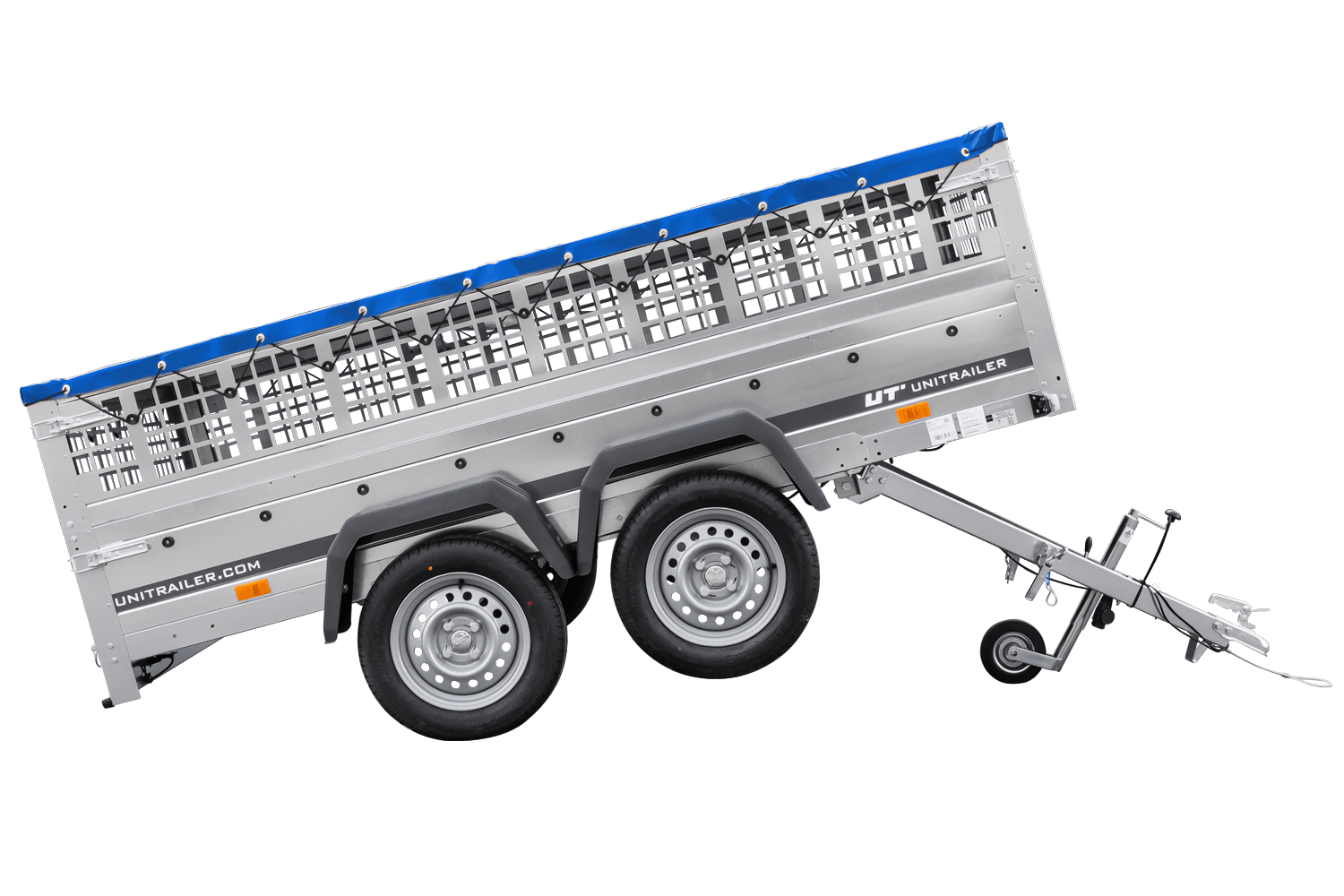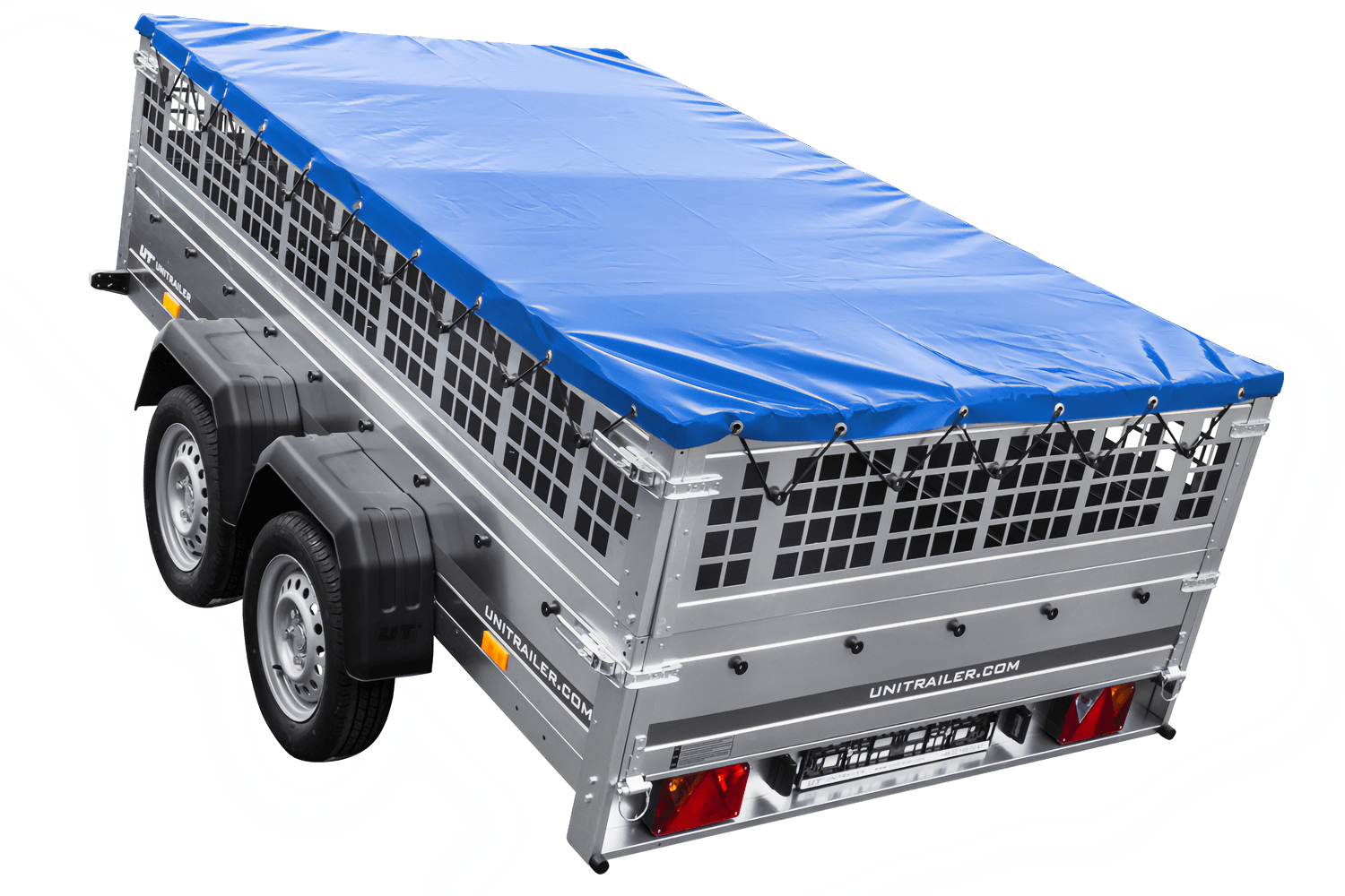 UNITRAILER GARDEN 265/2 KIPP Anhänger mit Gitterwänden, H-0 Rahmen und blauer Abdeckung