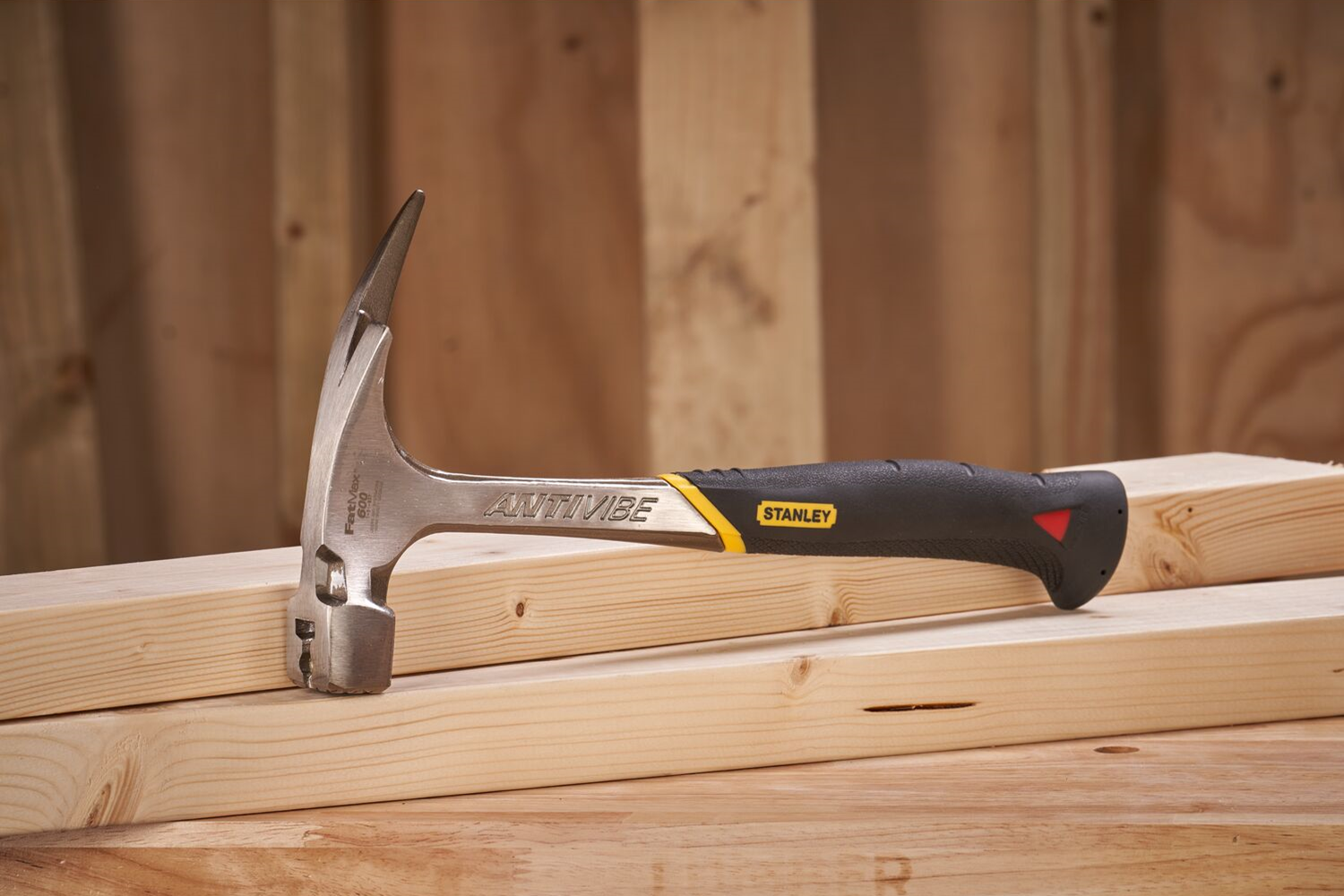 • Der STANLEY Antivibe 1-51-937 Dachdeckerhammer ist ein langlebiges Werkzeug mit einer einteiligen Stahlkonstruktion. Reduziert Vibrationen dank Antivibe-Technologie, während der magnetische Nagelhalter und der rutschfeste Griff.