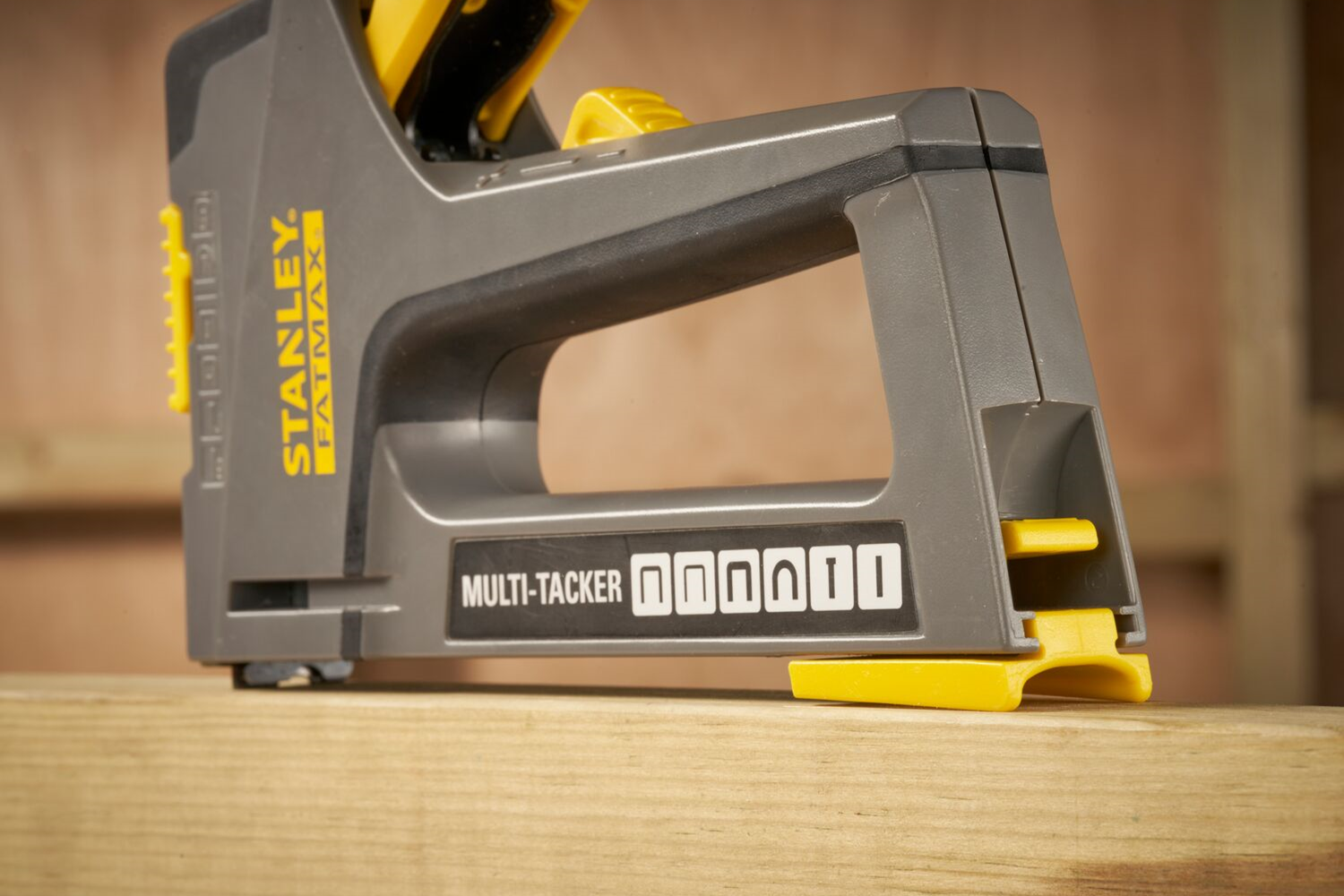 - Der Stanley FatMax TR75 6-in-1-Handtacker ist ein Multifunktionswerkzeug für Polster-, Montage- und Dekorationsarbeiten. Unterstützt 6 Arten von Feindrahtklammern und Nägeln, verfügt über eine Krafteinstellung und ein Anti-Stau-System.