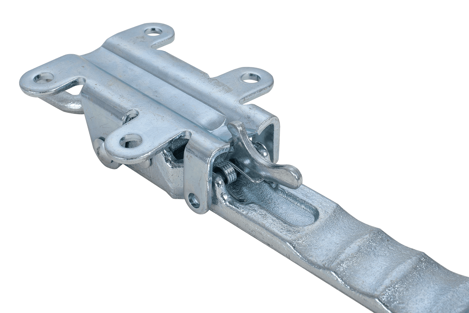 Die exzentrische Seitenkupplung EXZV 10-1 von WINTERHOFF ist eine robuste Anhänger-Hardwarekomponente zum sicheren und dauerhaften Verriegeln der Seiten von Last-, Landwirtschafts- und Nutzanhängern. Die Kupplung hat eine maximale Länge von 280 mm und einen Bolzenverstellbereich von 90 bis 130 mm. Ihre maximale Tragfähigkeit beträgt bis zu 1000 kg , was ihre Langlebigkeit auch bei starker Beanspruchung gewährleistet . Das Schloss verfügt über einen verstellbaren Bolzen in Form eines gegossenen „Ösens“, der die Anpassung an verschiedene Montagekonfigurationen ermöglicht, sowie einen federbelasteten Verriegelungsmechanismus , der ein versehentliches Öffnen während der Fahrt verhindert .