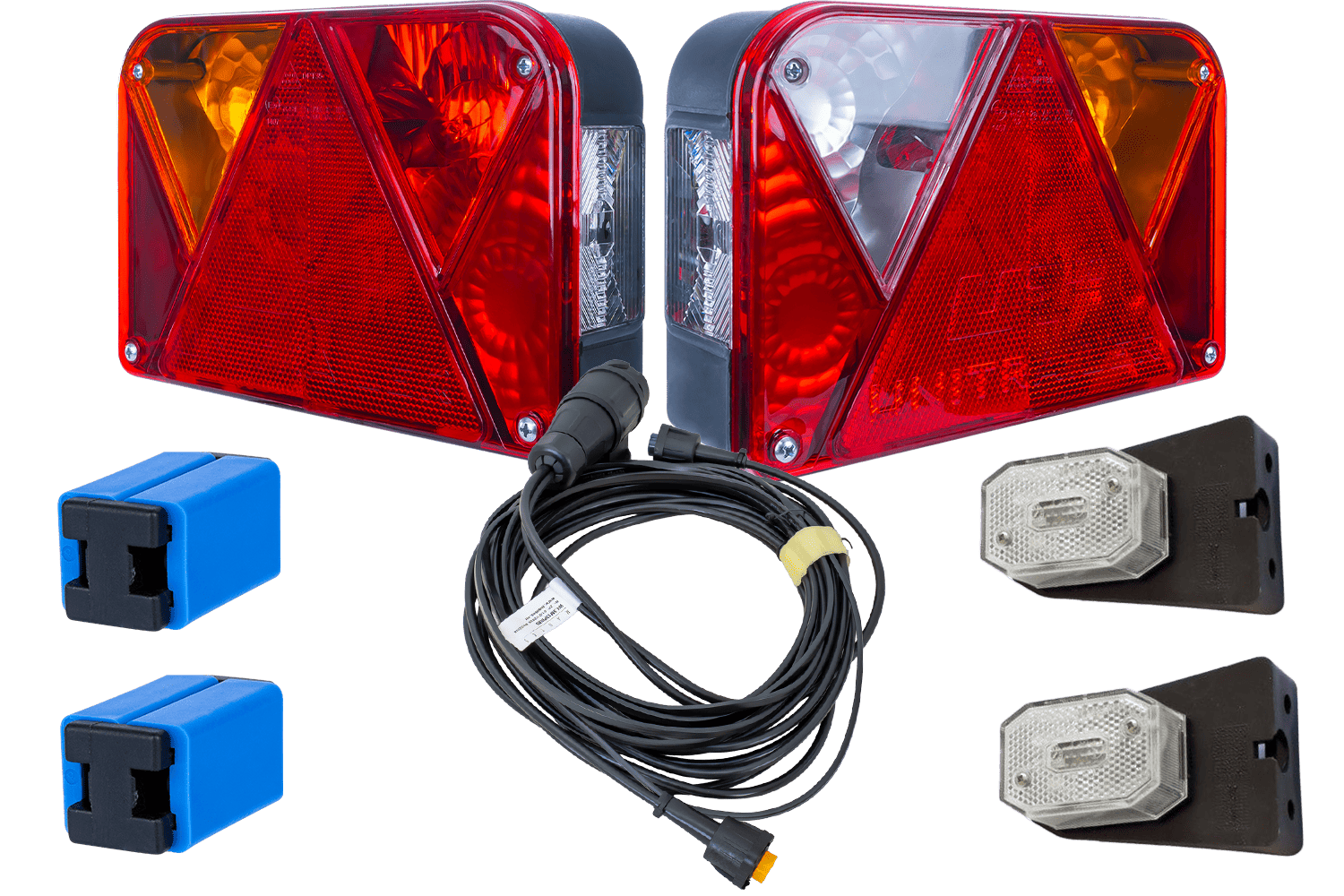 Das Beleuchtungsset ist eine umfassende Elektroinstallation , die Anhänger, Auflieger und andere Transportfahrzeuge vollständig und vorschriftsmäßig beleuchtet und so deren Sichtbarkeit und Verkehrssicherheit erhöht. Es besteht aus Rückleuchten, Begrenzungsleuchten, einem Kabelbaum und Schnellverbindern. Die Schnellverbinder ermöglichen eine schnelle und einfache Montage und sorgen für eine dauerhafte und sichere Verbindung zwischen Begrenzungsleuchten und Verkabelung. Dank hochwertiger Komponenten garantiert das Set einen zuverlässigen Betrieb und gute Sichtbarkeit. und Einhaltung der geltenden Sicherheitsstandards. Dies ist die ideale Lösung für alle, die ein umfassendes und langlebiges Fahrzeugbeleuchtungssystem suchen .
