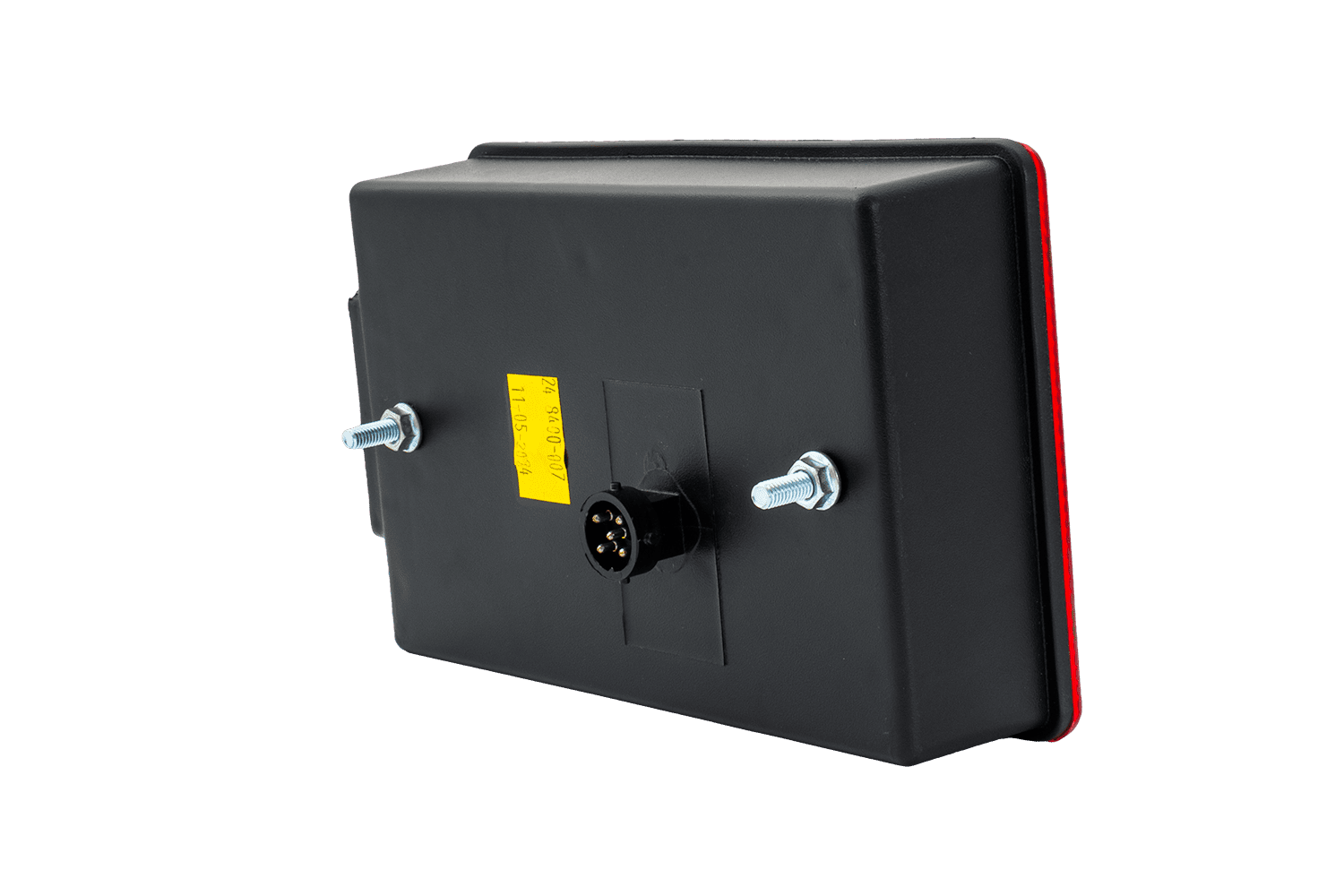 Der Balken ist ausgestattet mit zwei 5-polige Bajonettstecker Zum Anschluss von Rückleuchten. Das Bajonettsystem gewährleistet eine schnelle und sichere Montage und verhindert ein versehentliches Trennen während der Fahrt. Das Steckerdesign garantiert eine wasserdichte Verbindung und schützt die Kontakte vor Korrosion. Dies gewährleistet einen langfristigen, störungsfreien Betrieb der gesamten Anhängerbeleuchtung.