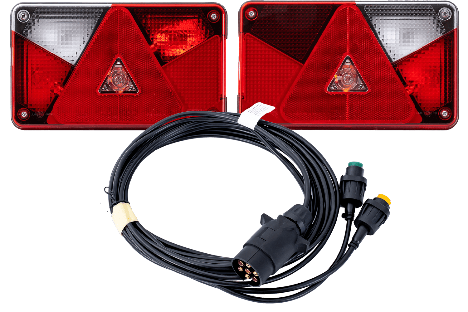 Dieses Beleuchtungsset ist eine elektrische Lösung, die Anhängern, Pritschenanhängern und anderen Transportfahrzeugen eine umfassende, vorschriftsmäßige Beleuchtung bietet und so deren Sichtbarkeit und Verkehrssicherheit erhöht. Es besteht aus Rückleuchten und einem Kabelbaum. Hochwertige Komponenten gewährleisten zuverlässigen Betrieb, hervorragende Sichtbarkeit und die Einhaltung geltender Sicherheitsstandards. Es ist die perfekte Wahl für alle, die ein langlebiges und effektives Fahrzeugbeleuchtungssystem suchen.