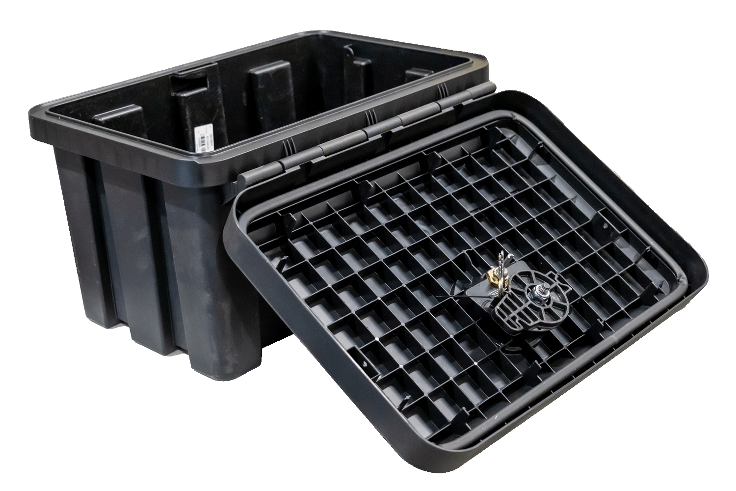 Die Box besteht aus hochwertigem Polypropylen und Nylon und ist zusätzlich mit Rippen verstärkt, was ihre Haltbarkeit und Widerstandsfähigkeit gegen mechanische Beschädigungen erhöht. Das Material bietet außergewöhnlichen Schutz vor Feuer, Wasser, Staub, Kraftstoff, UV-Strahlen und extremen Temperaturen und ist somit eine ideale Lösung für den intensiven Einsatz unter schwierigen Bedingungen. Der Deckel der Box ist mit einer Gummidichtung ausgestattet, die für absolute Dichtheit sorgt und das Eindringen von Wasser und Staub ins Innere verhindert . Durch diese Konstruktion werden die gelagerten Werkzeuge und Geräte wirksam vor schädlichen äußeren Einflüssen geschützt, was insbesondere bei intensiver Nutzung auf Baustellen oder unter schwierigen Witterungsbedingungen wichtig ist.