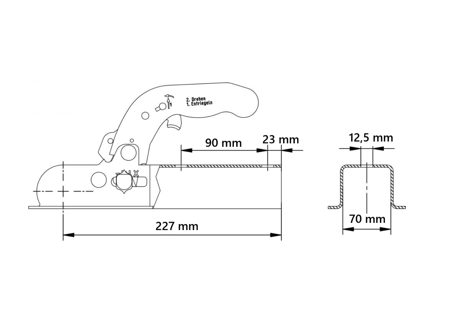 KNOTT K7.5-M Kugelkupplung für 750kg Anhänger mit 70mm Vierkantdeichsel