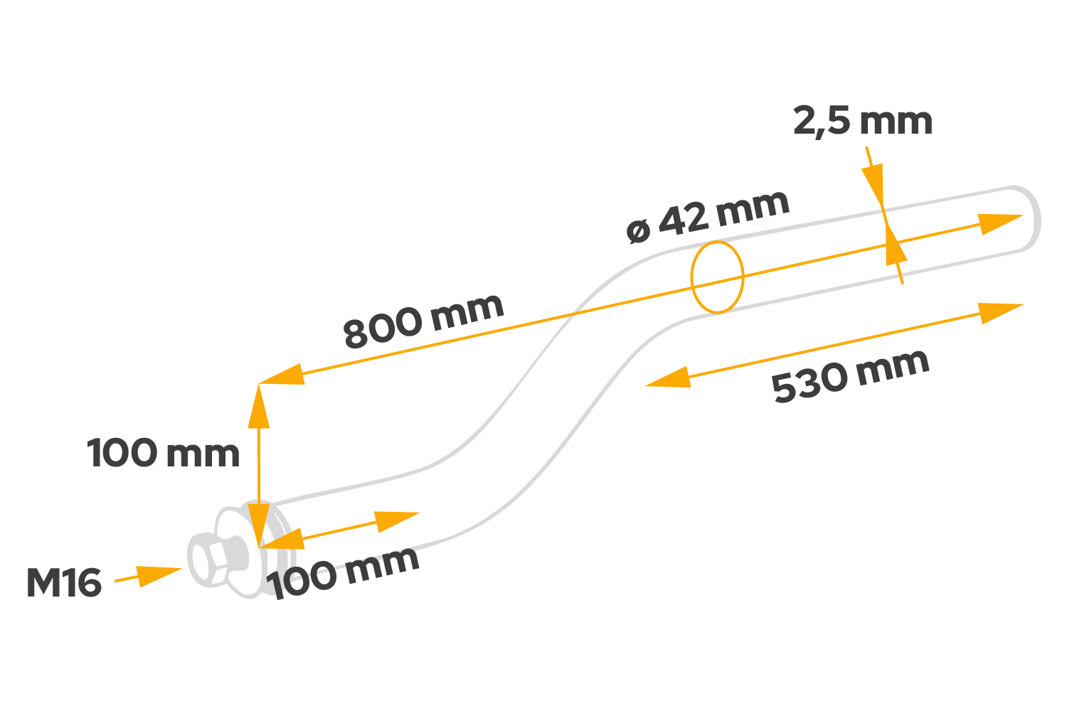 Das gebogene Rohr DK8026 von DOMAR ist ein robustes Montageelement aus Stahl, schwarz pulverbeschichtet, was seine Beständigkeit gegen Korrosion und raue Betriebsbedingungen erhöht. Das Rohr hat einen Durchmesser von 42 mm , eine Länge von 800 mm und ein M16-Außengewinde , was eine schnelle und sichere Montage mit anderen Befestigungselementen wie Schellen oder Halterungen ermöglicht.